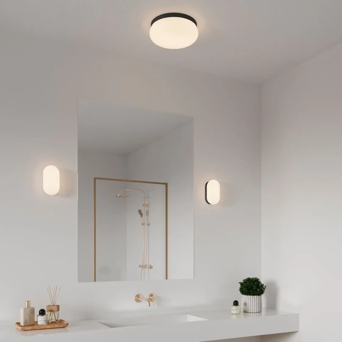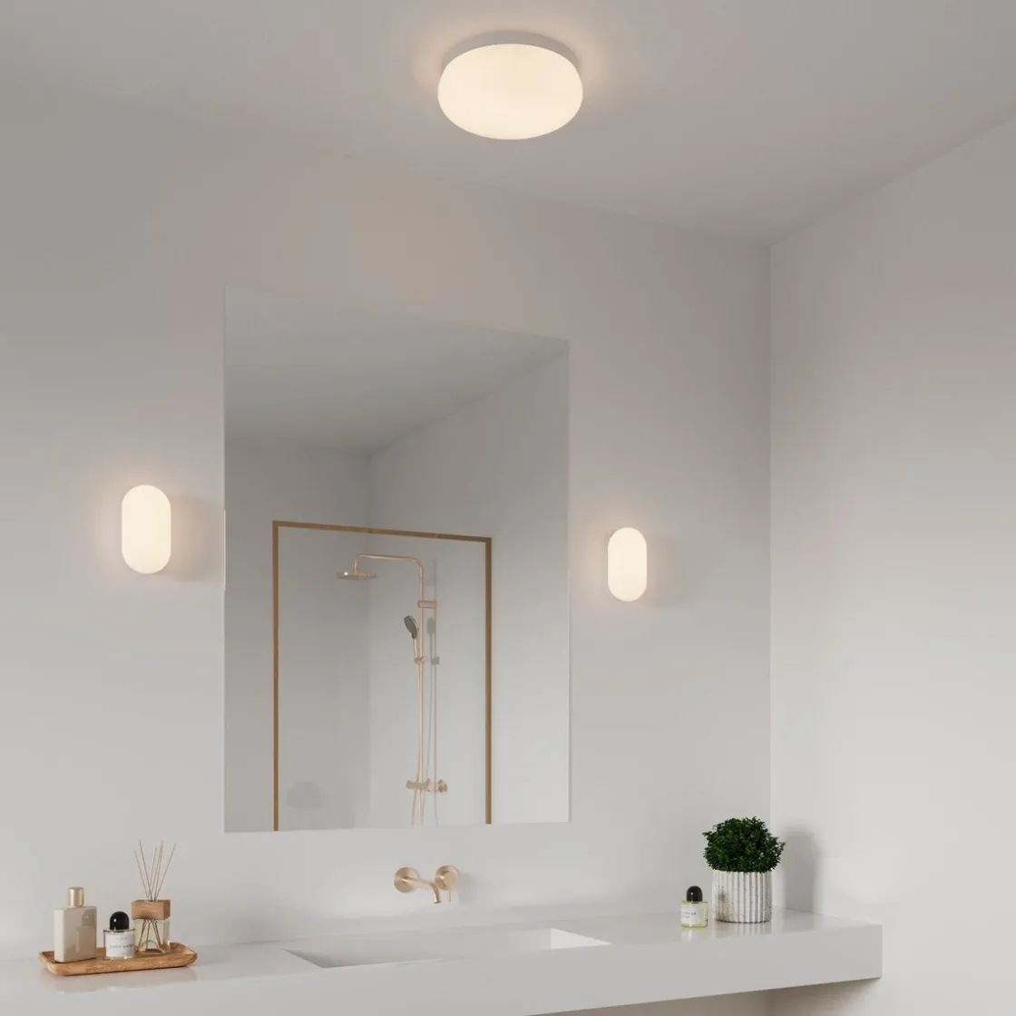 Foam er en taklampe med et strømlinjeformet og enkelt design. Den høye IP-klassifiseringen (IP44) gjør den perfekt for badet. Gir et diffust og behagelig lys.