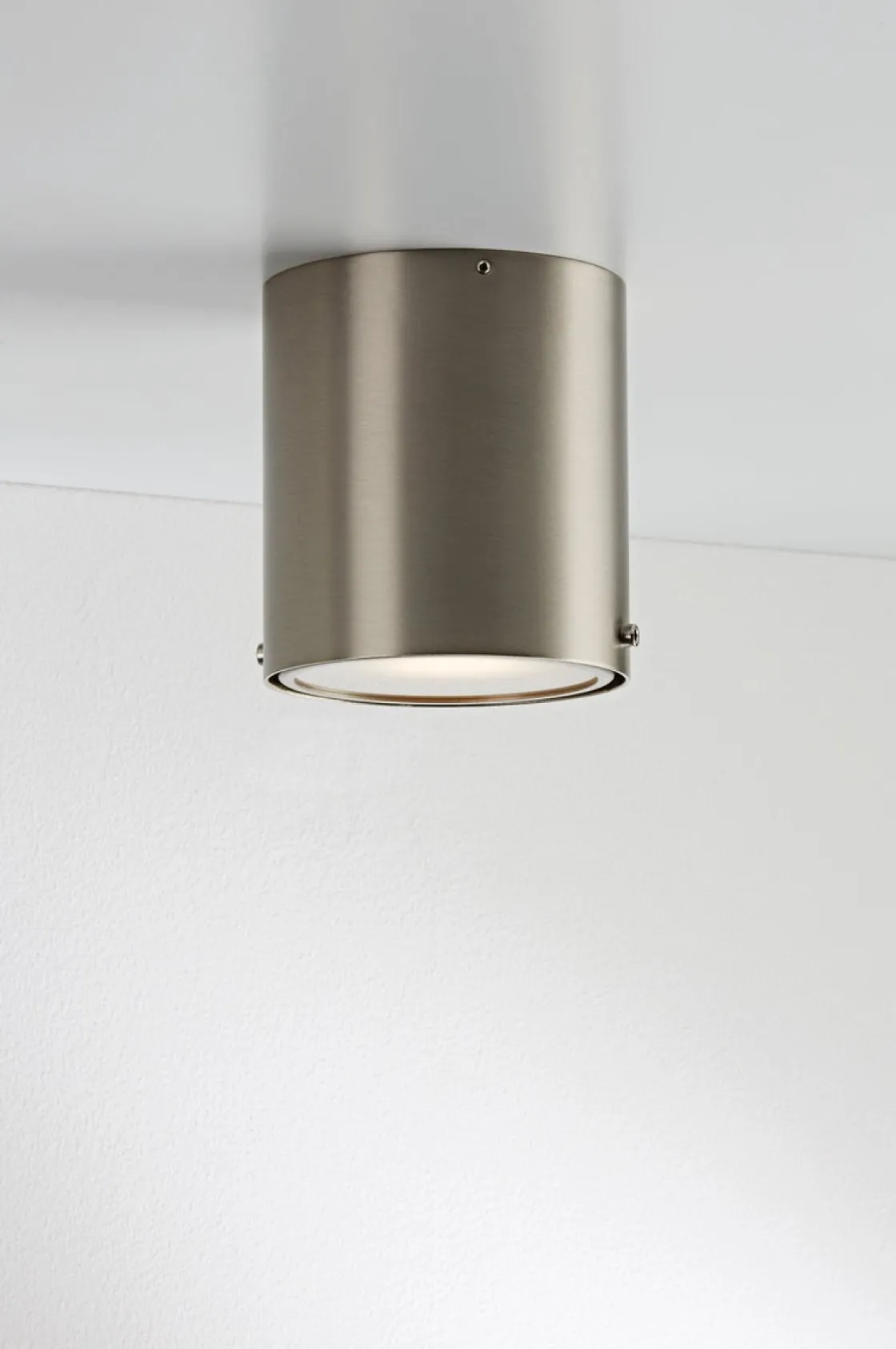 IP S4 er en moderne utenpåliggende takspot som er godkjent for baderom IP44. Den kan tiltes 20° og har et frostet glass slik at lyset ikke blir så skarpt. Finnes i hvitt og børstet stål, samt som vegglampe. (se relaterte produkter)IP S4 kan brukes hvis du ønsker en mer markant belysning enn de klassiske innebygde spottene på badet eller i andre rom. Den enkle utformingen er industriell og minimalistisk. Monteres i taket. En del av IP-serien. Design av Bønnelycke mdd.