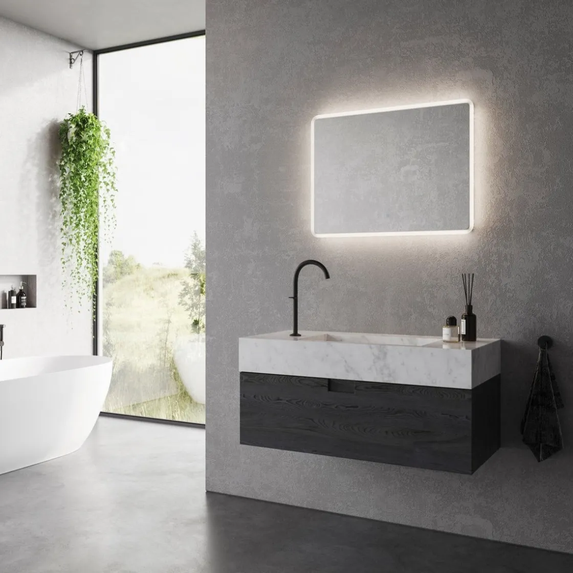 Dette elegante baderomsspeilet kaster lyset vakkert bakover på veggen og gir et fint lys når du skal sminke deg eller gjøre deg klar. Du slår av lyset med et enkelt trykk på av/på-knappen på speilet.