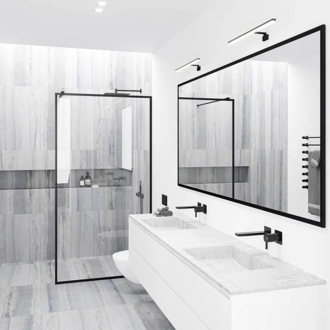 Stilren vegglampe for baderommet. Passer utmerket ovenfor speilet.