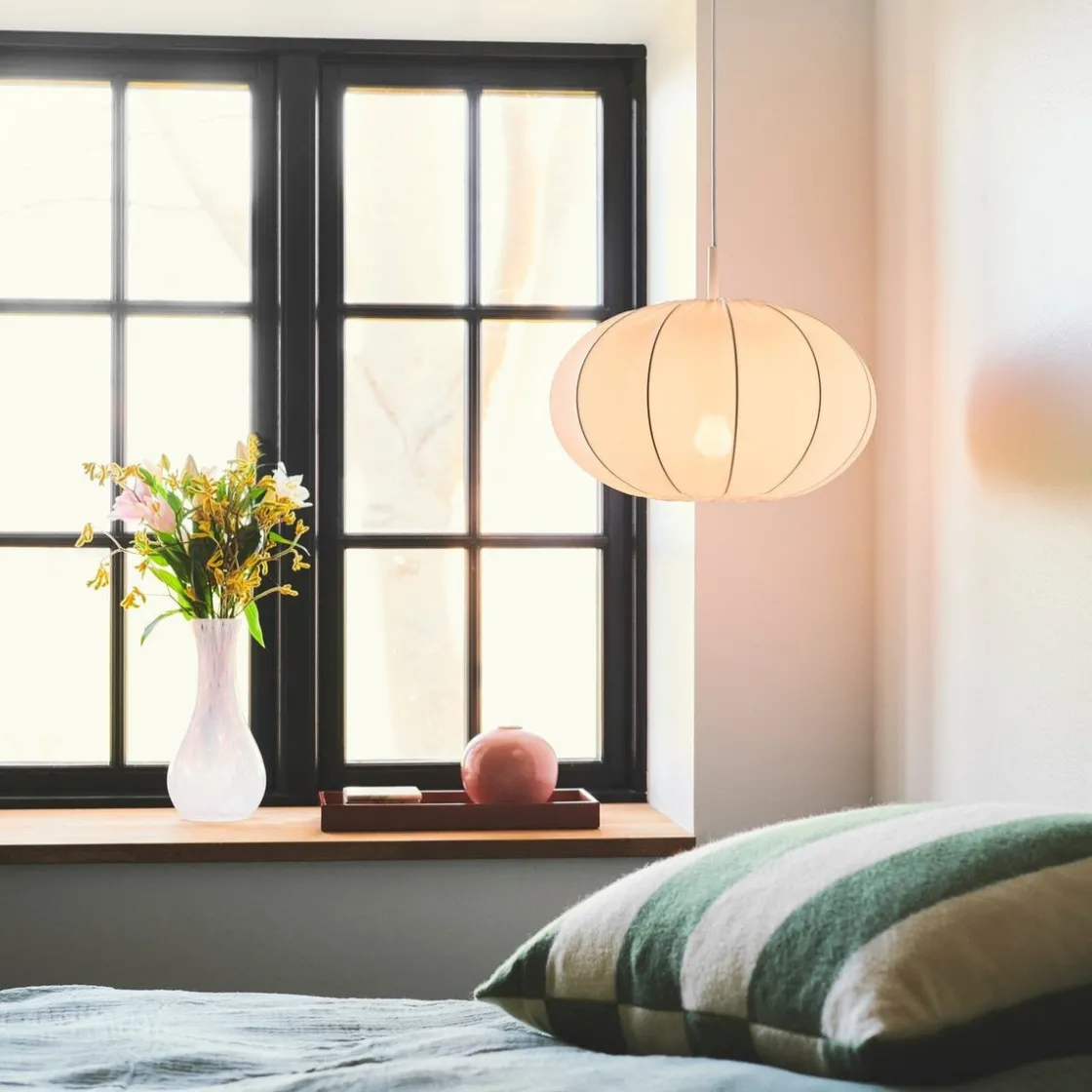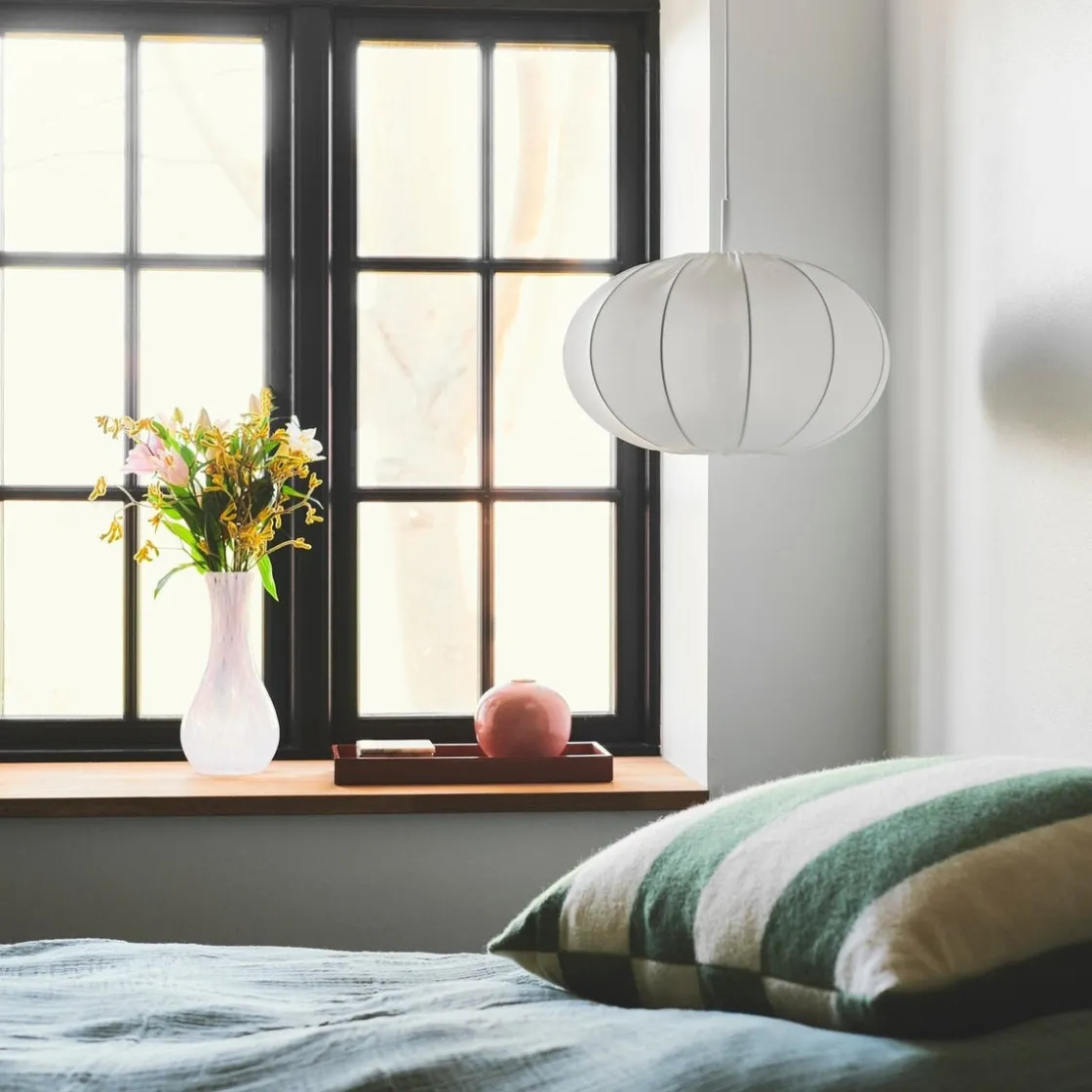 Aeron har et luftig design og en myk stoffskjerm som gir et jevnt og behagelig lys. Den er perfekt for å skape en koselig atmosfære på soverommet. Lampen er enkel å montere med ledninger og innebygd snor.