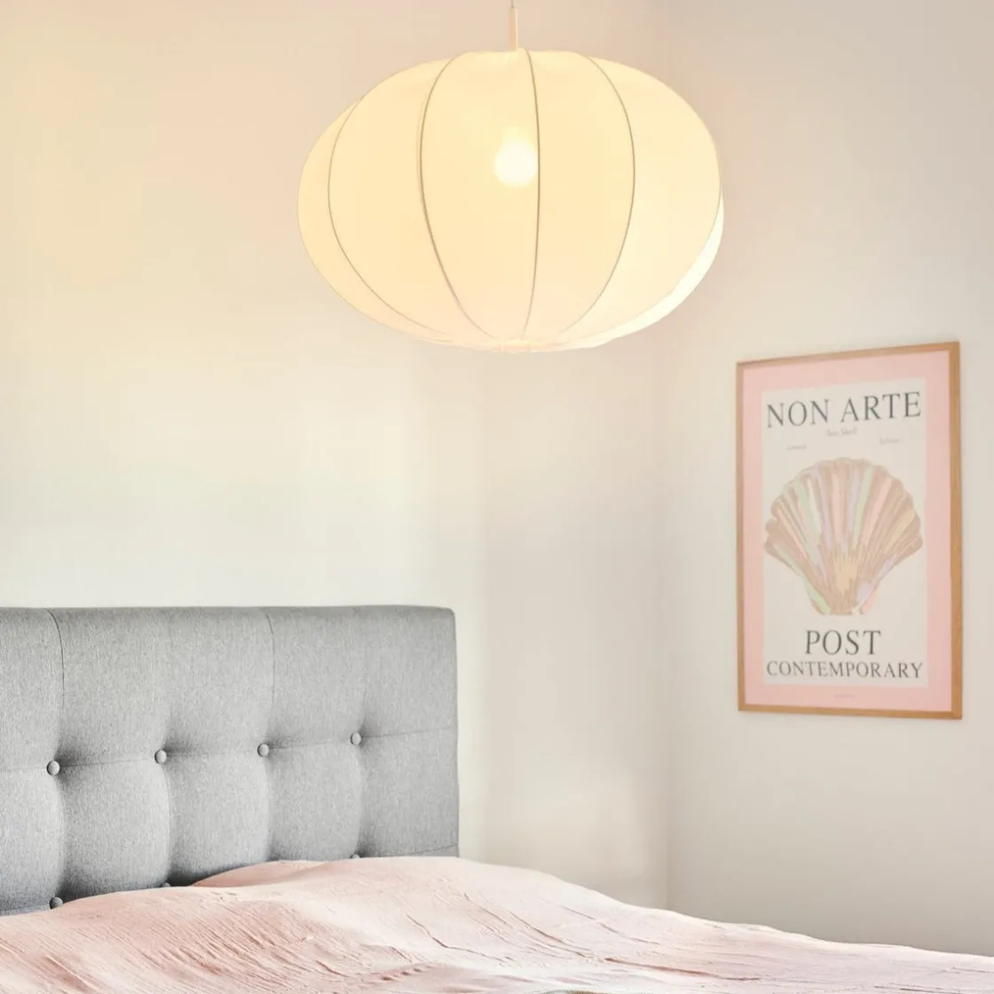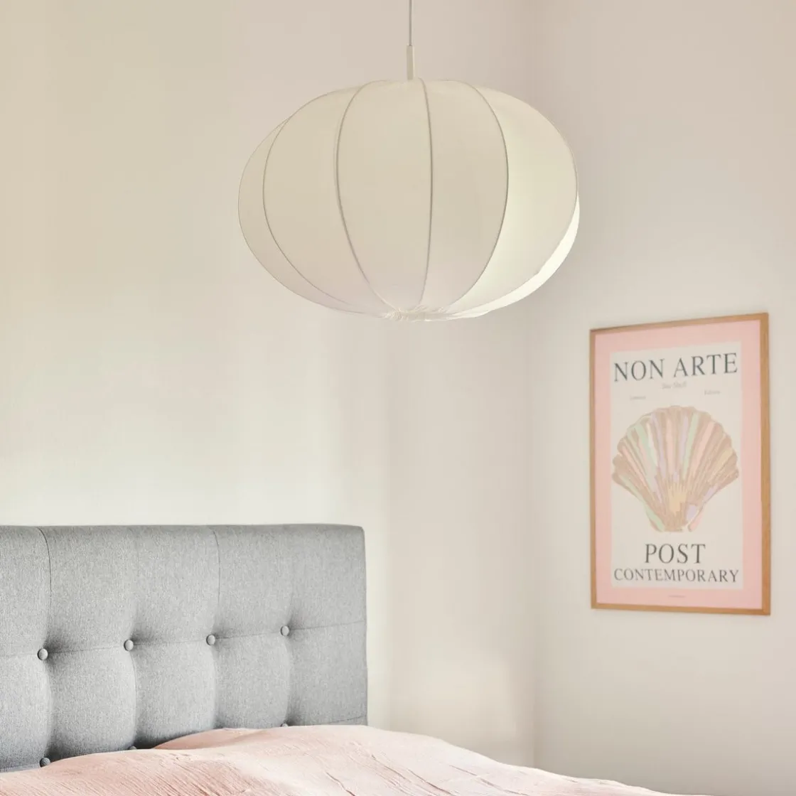 Aeron har et luftig design og en myk stoffskjerm som gir et jevnt og behagelig lys. Den er perfekt for å skape en koselig atmosfære på soverommet. Lampen er enkel å montere med ledninger og innebygd snor.
