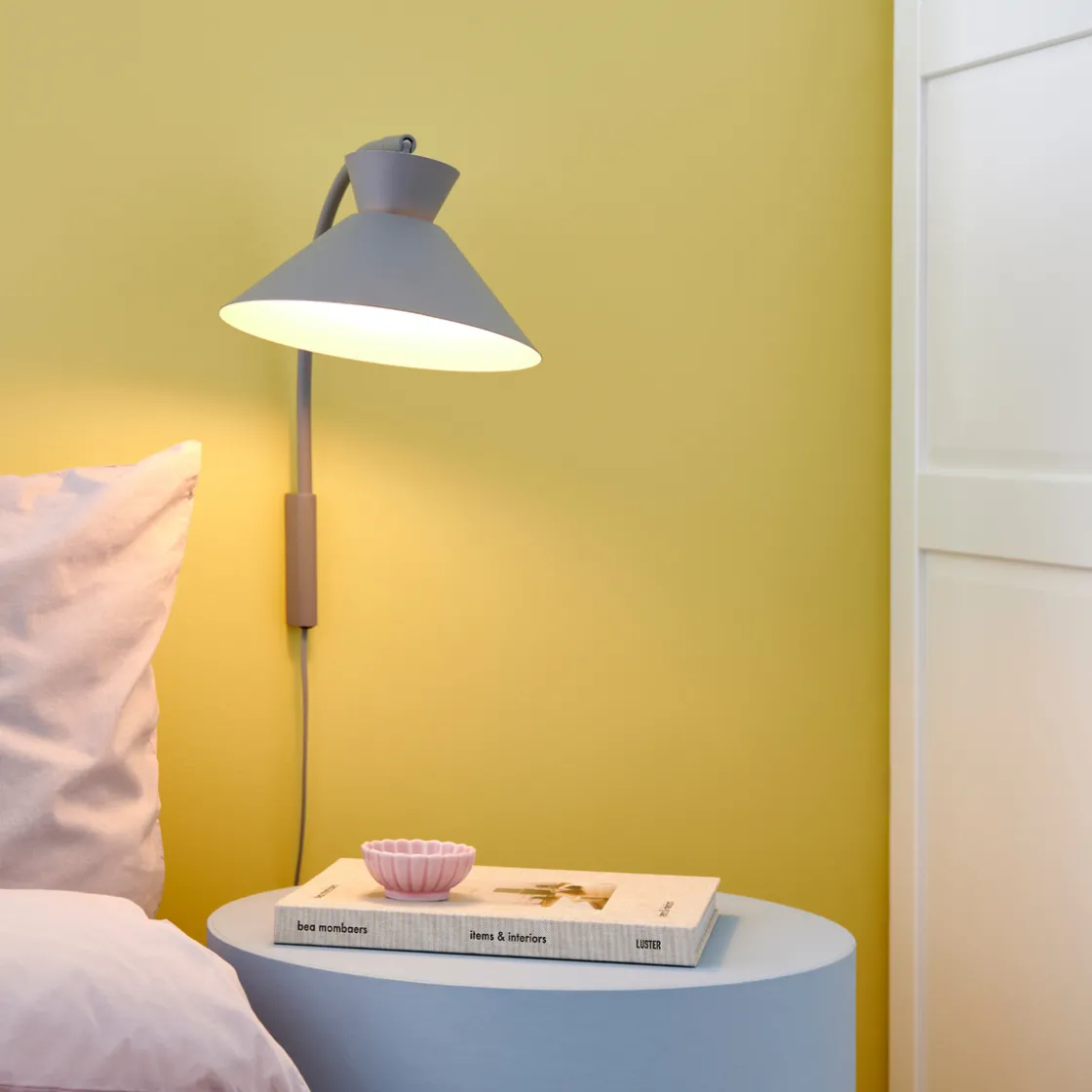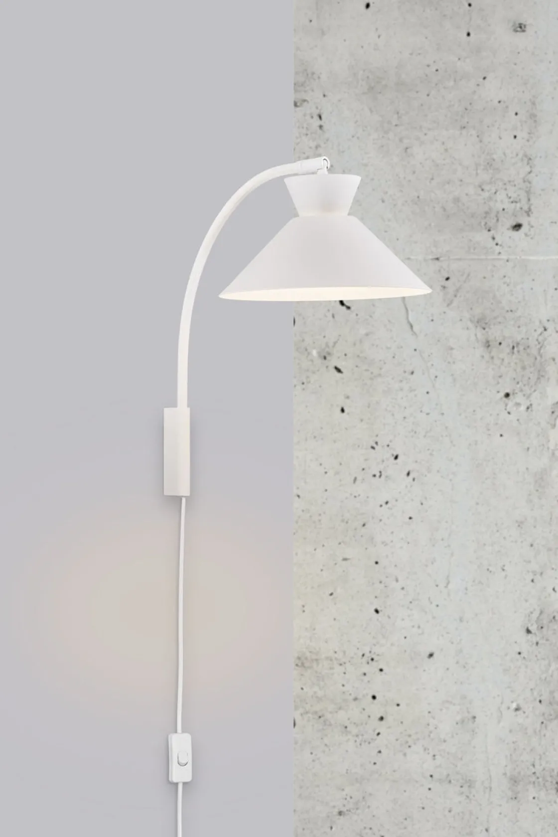 Dial er en moderne og tidsriktig familie inspirert av karakteristisk lysdesign fra 50-tallet. Stilen er nordisk og strømlinjeformet, med en åpen og geometrisk form som lar mye lys skinne gjennom. Den åpne skjermen skaper en dekorativ opplyseffekt når lyset er slått på. Den buede veggbraketten støtter det lette og elegante uttrykket.