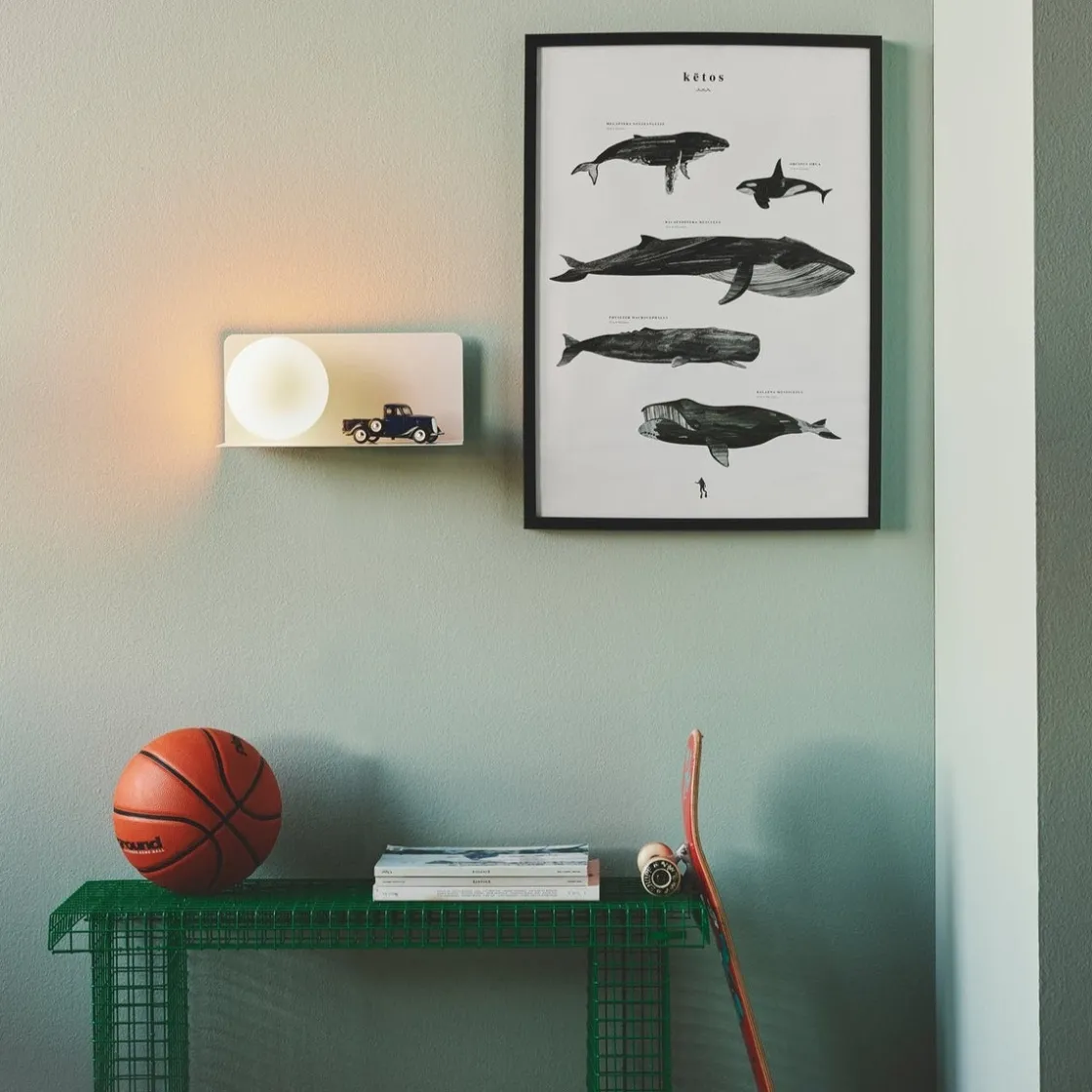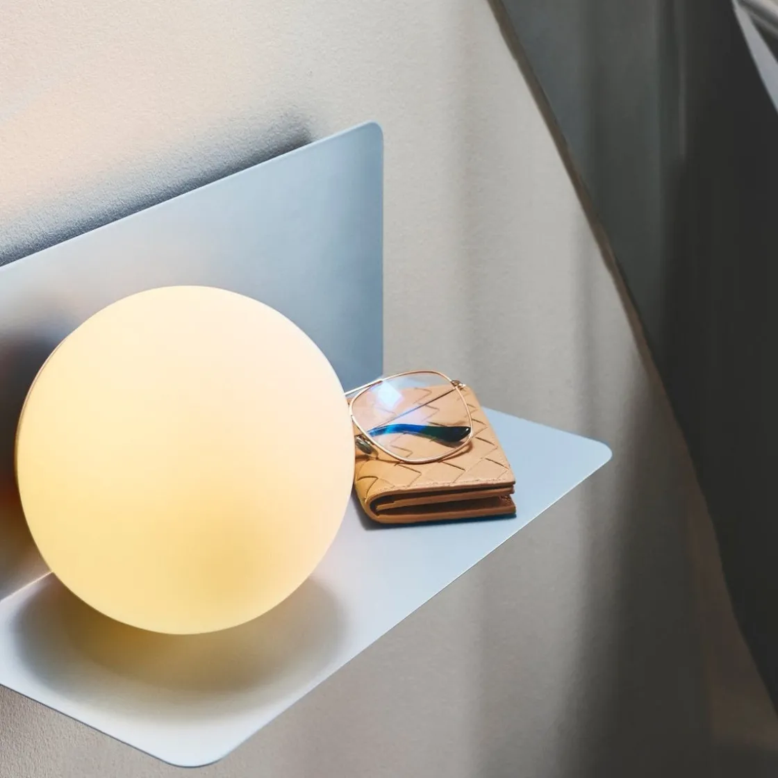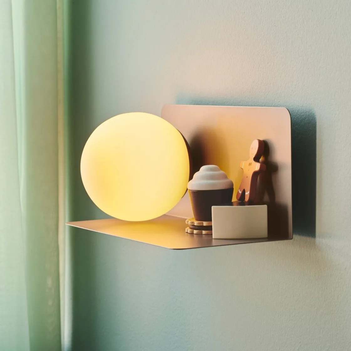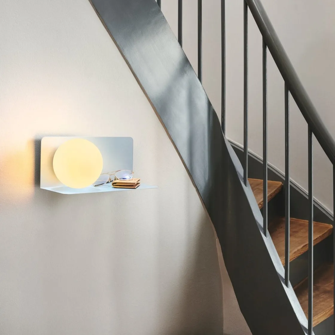 Lilibeth er en lampe og hylle i ett elegant design. Plasser den ved siden av sengen eller i gangen som et sted der du kan oppbevare viktige nødvendigheter som telefonen, en bok eller nøkler. Den opalhvite glasskuppelen sørger for et behagelig, diffust lys. Den er også perfekt som nattbordslampe på barnerommet for å få de minste til å føle seg trygge om natten.