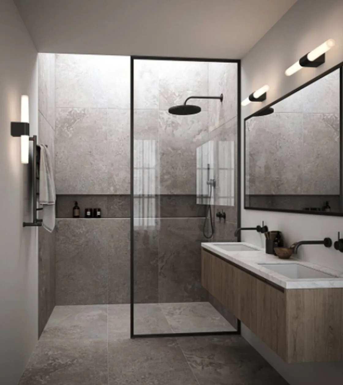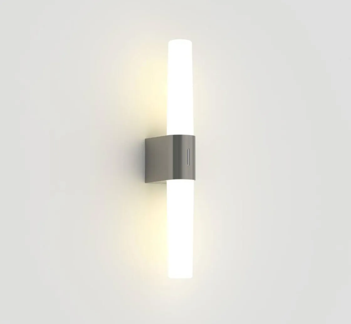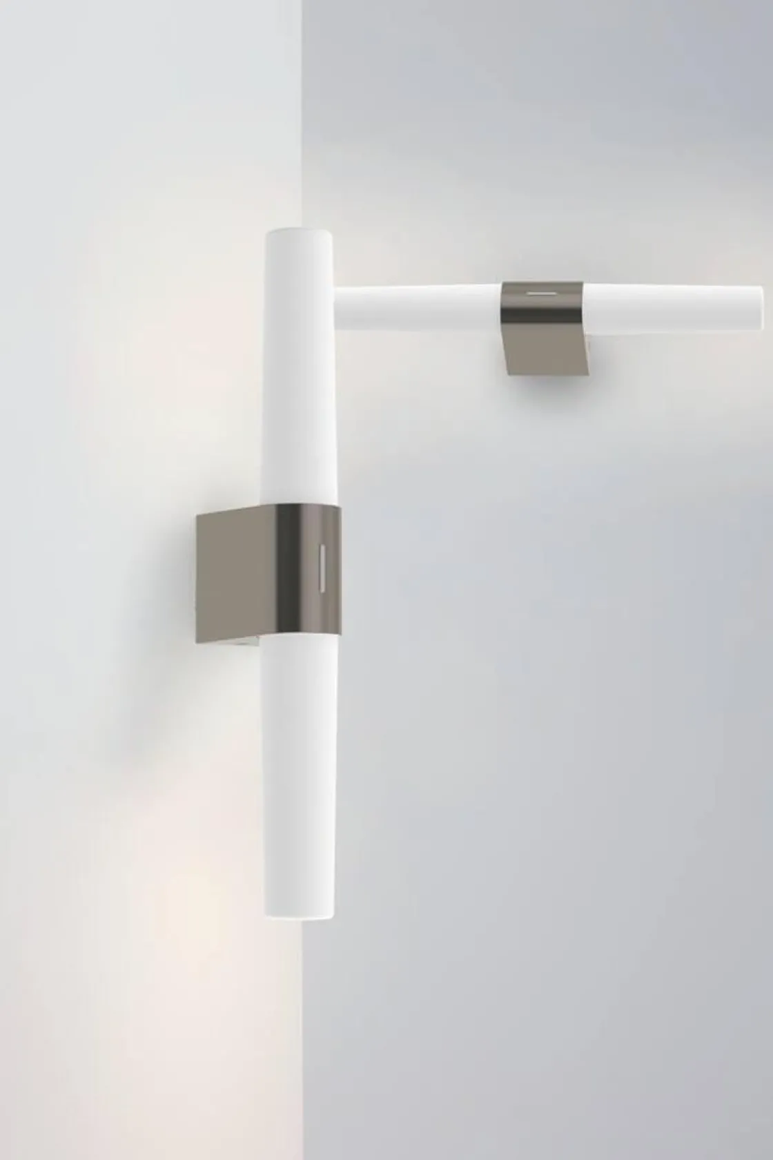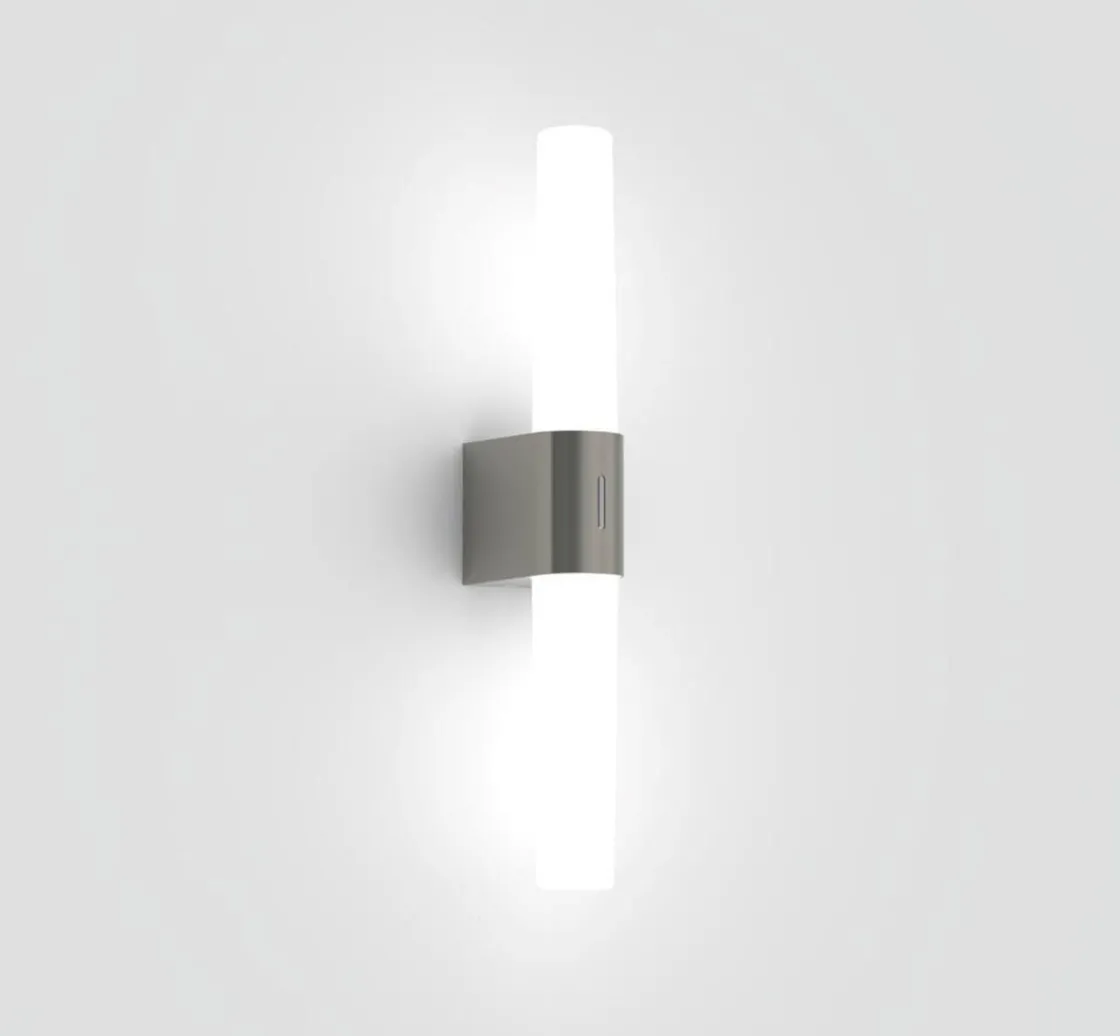 Helva Double Basic er en moderne og minimalistisk vegglampe med integrert LED som med sin høye beskyttelsesgrad, IP44, passer for fuktige områder som badet.