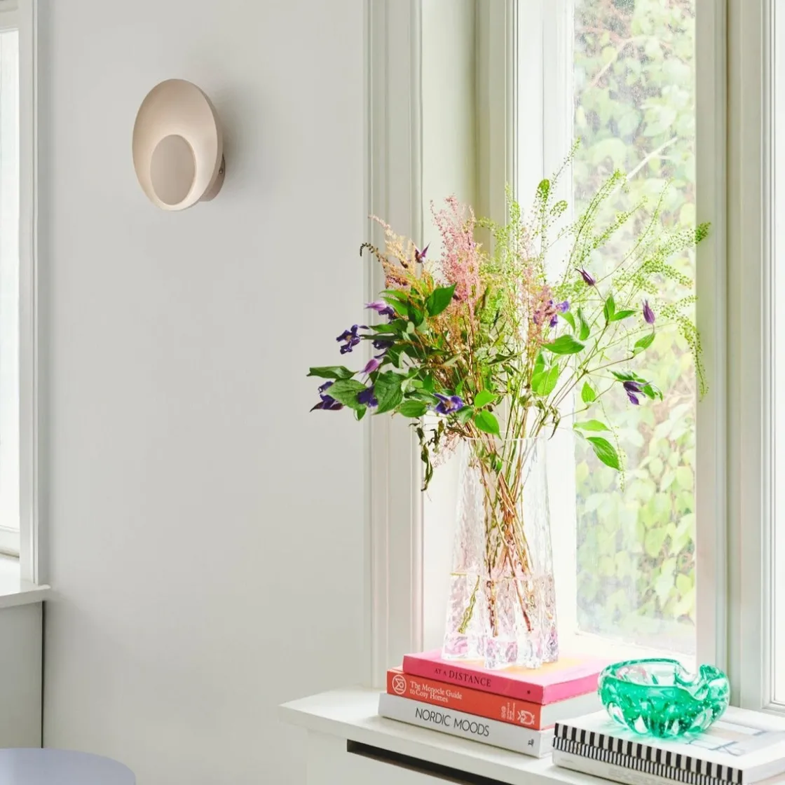 Marsi er en liten vegglampe som består av to perfekt runde skjermer. Lyset reflekteres på bakskjermen og skaper et koselig og diffust lys. Du kan dimme lyset i tre trinn med en innebygd Moodmaker™-funksjon ved å snu bryteren på kabelen.