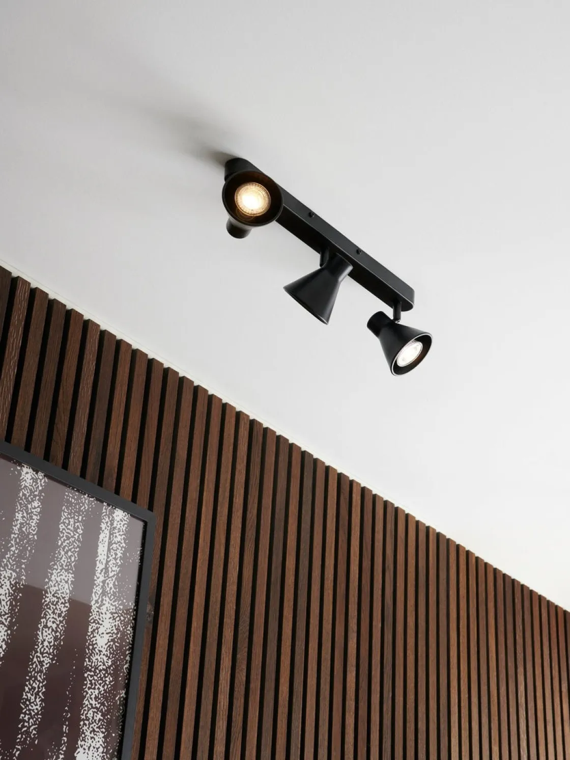 Eik har en enkel og moderne stil som vil passe inn i de fleste interiører. Lampeskinnen har vippbare og dreibare skjermer som gir retningsbestemt lys – perfekt som spot på utvalgte detaljer i interiøret uansett om du velger å montere den på veggen eller i taket.