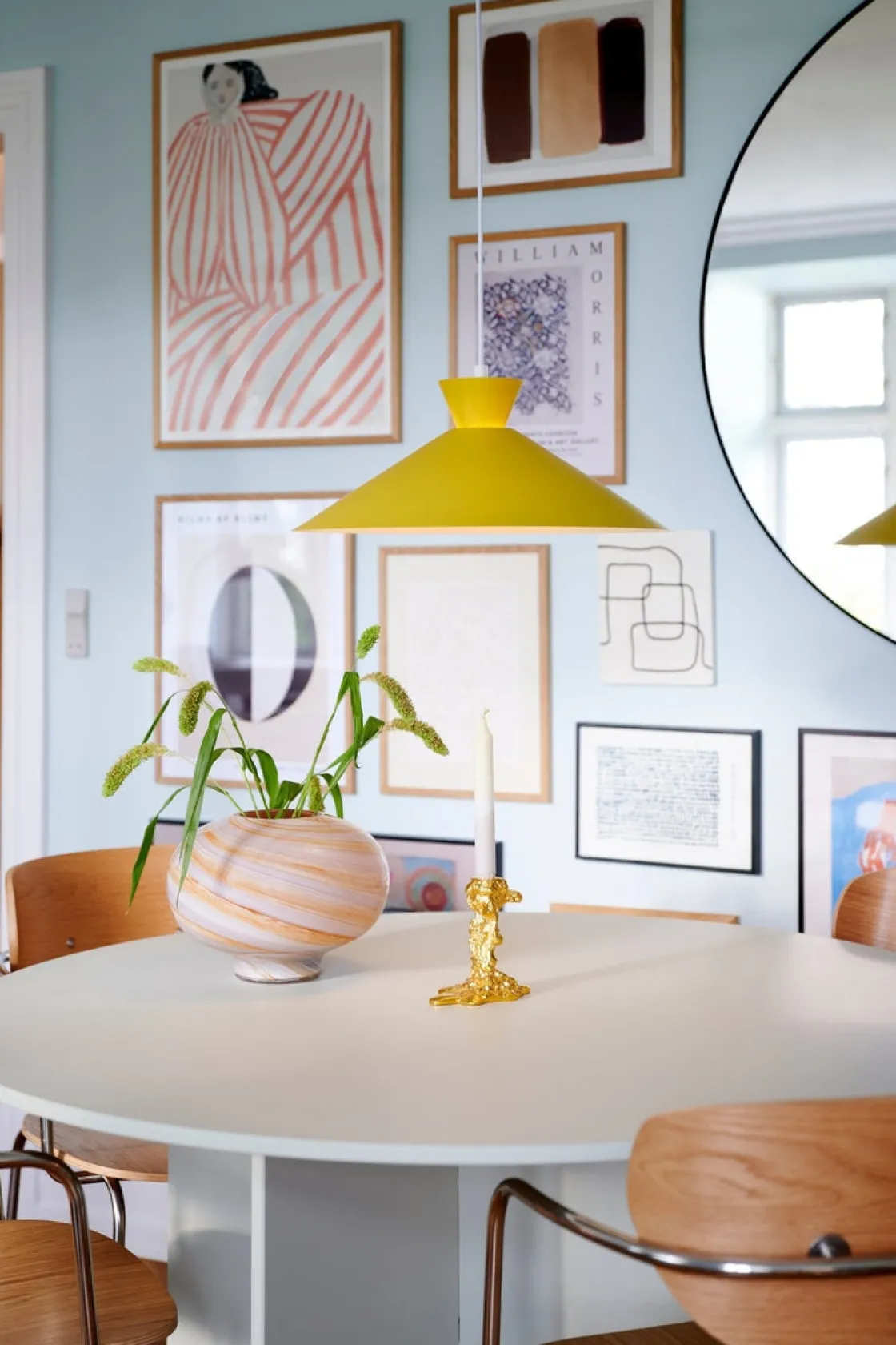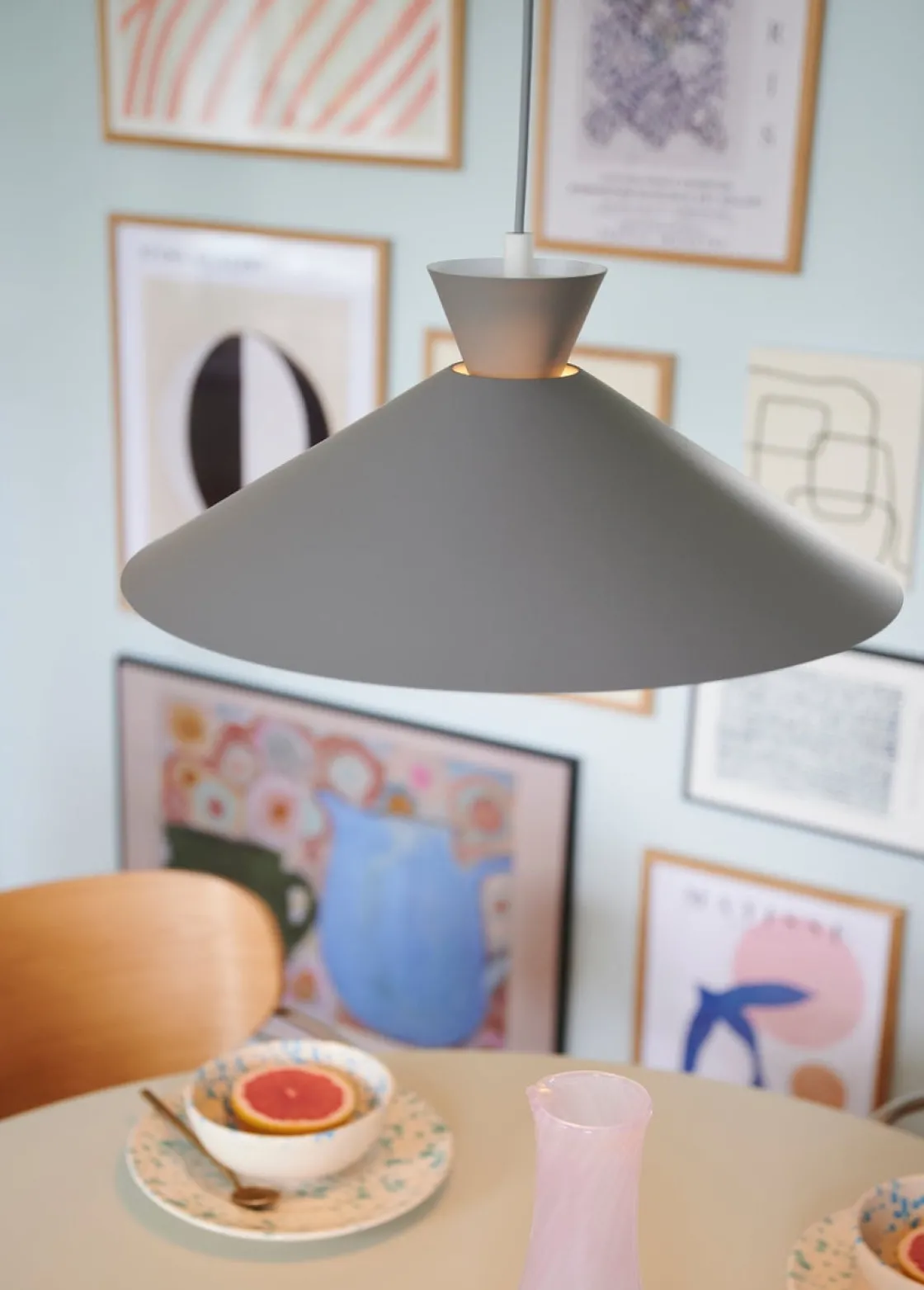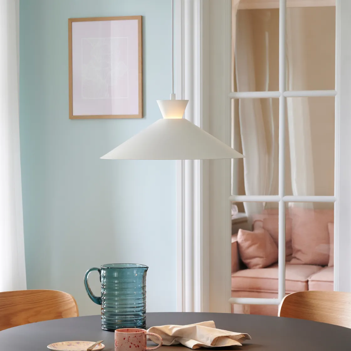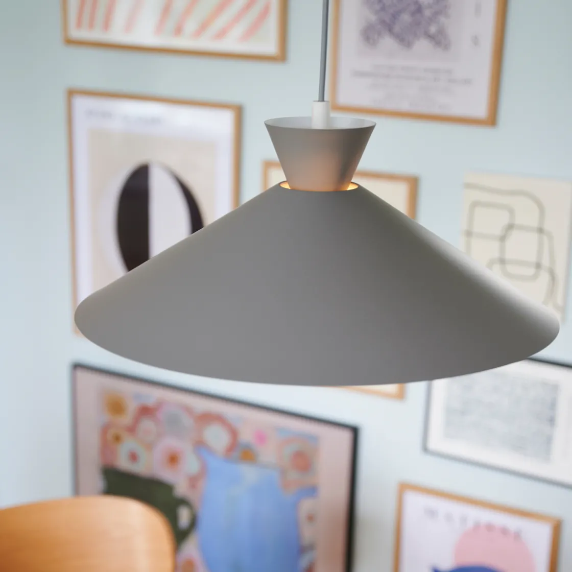 Dial er en moderne og tidsriktig familie inspirert av karakteristisk lysdesign fra 50-tallet. Stilen er nordisk og strømlinjeformet, med en åpen og geometrisk form som lar mye lys skinne gjennom. Den åpne skjermen skaper en dekorativ opplyseffekt når lyset er slått på.