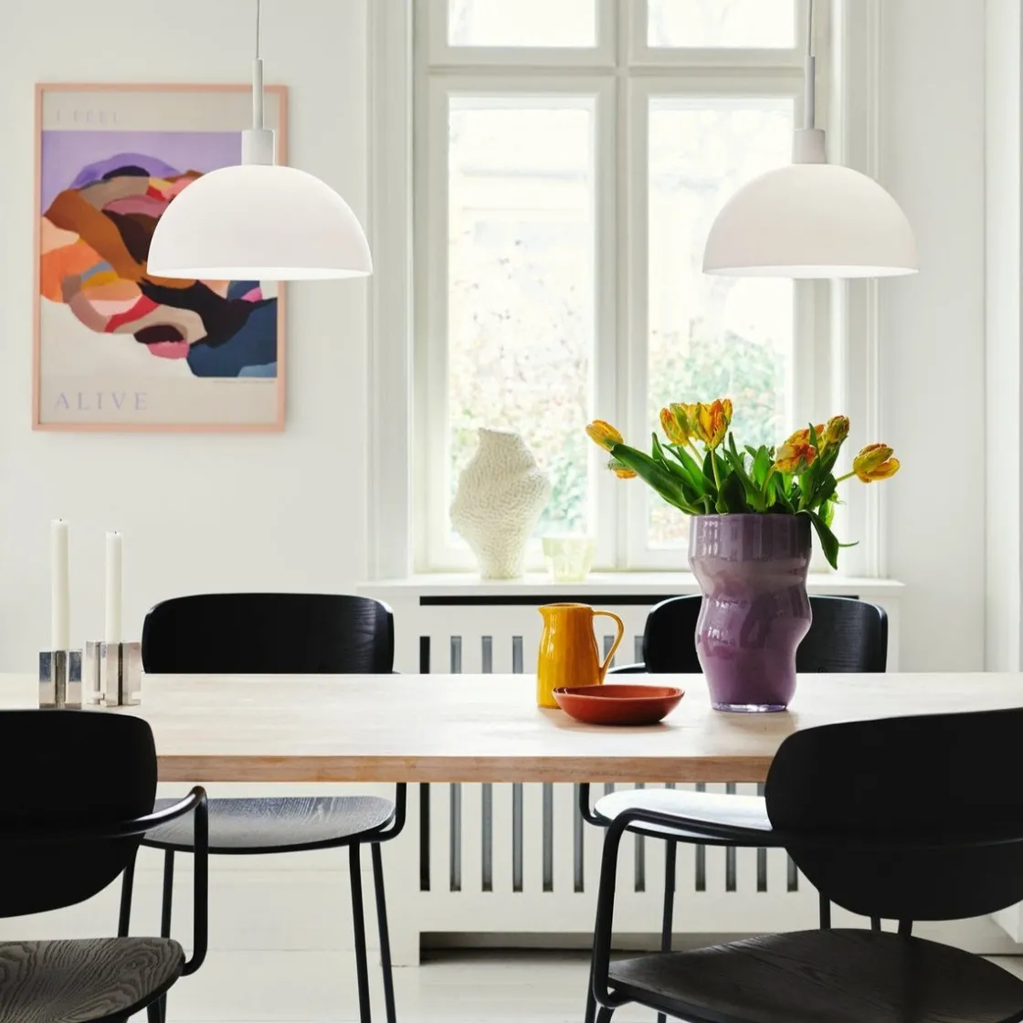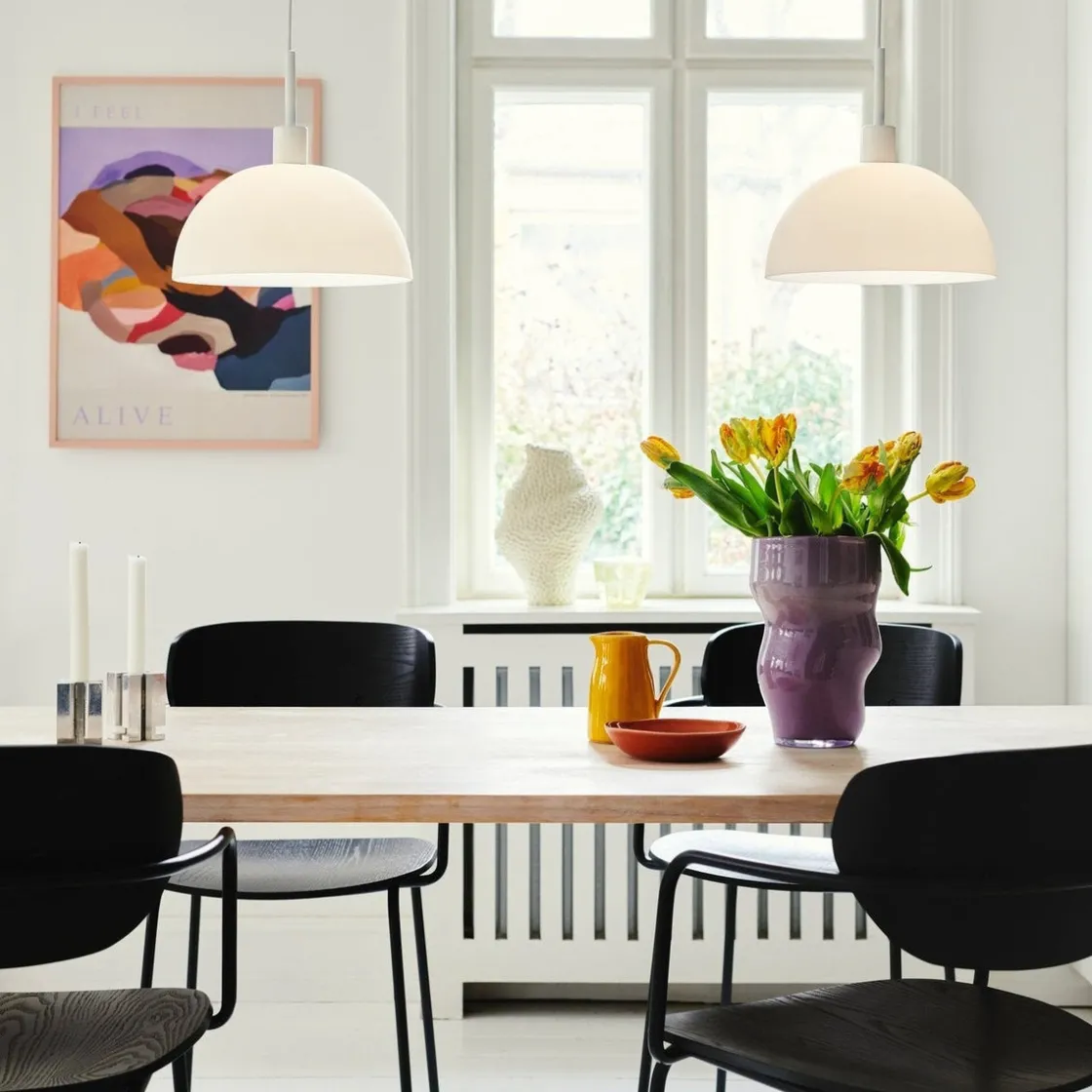 Med referanser til minimalistisk og tidløst skandinavisk design passer Ellen vakkert inn i de fleste interiørdesign. Den store, runde skjermen bidrar med visuelt volum og et bredt lysfelt, noe som gir behagelig belysning.