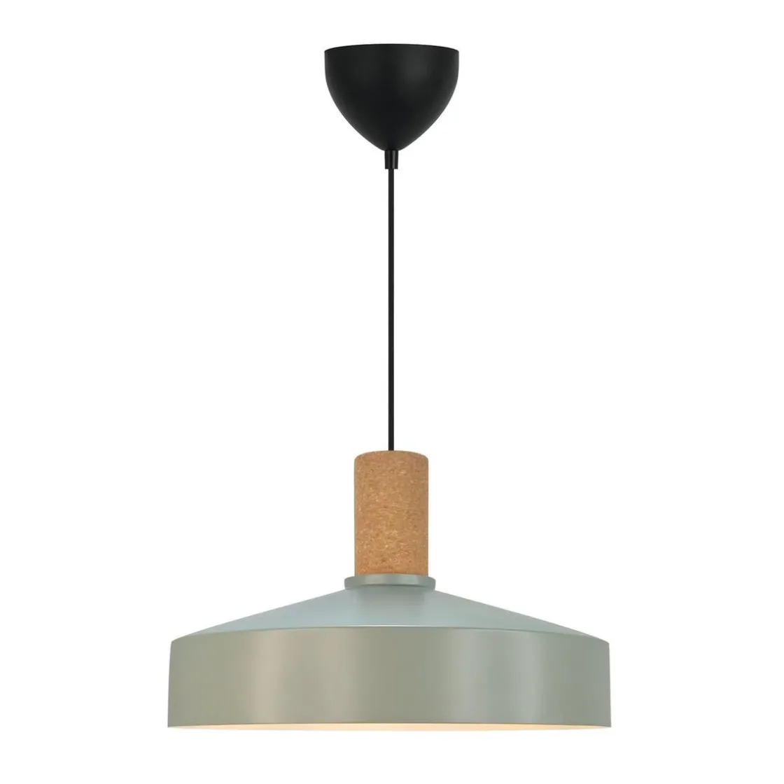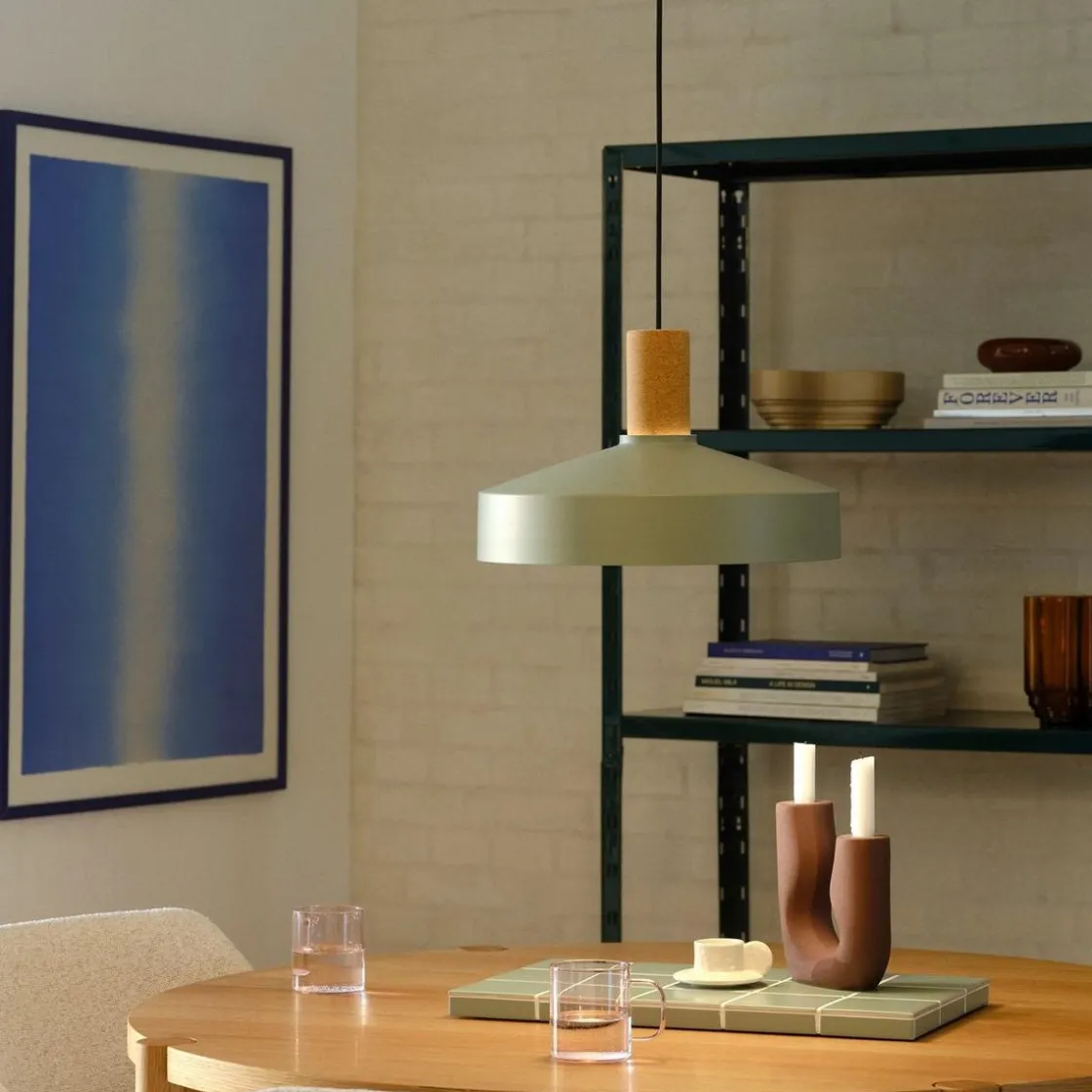 Pendelen Elvas har et moderne og minimalistisk design med en metallskjerm som komplementeres av det elegante korkopphenget. Elvas vil henge vakkert over spisebordet eller ved siden av sofaen eller lenestolen din.