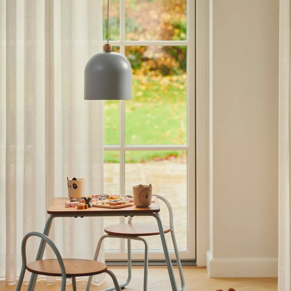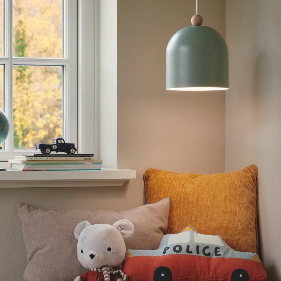 Gaston er en strømlinjeformet pendel som fås i fire fine, dempede farger. Den avrundede skjermen har en liten tredetalj på toppen og er et fint innslag på ethvert lekerom eller barnerom.
