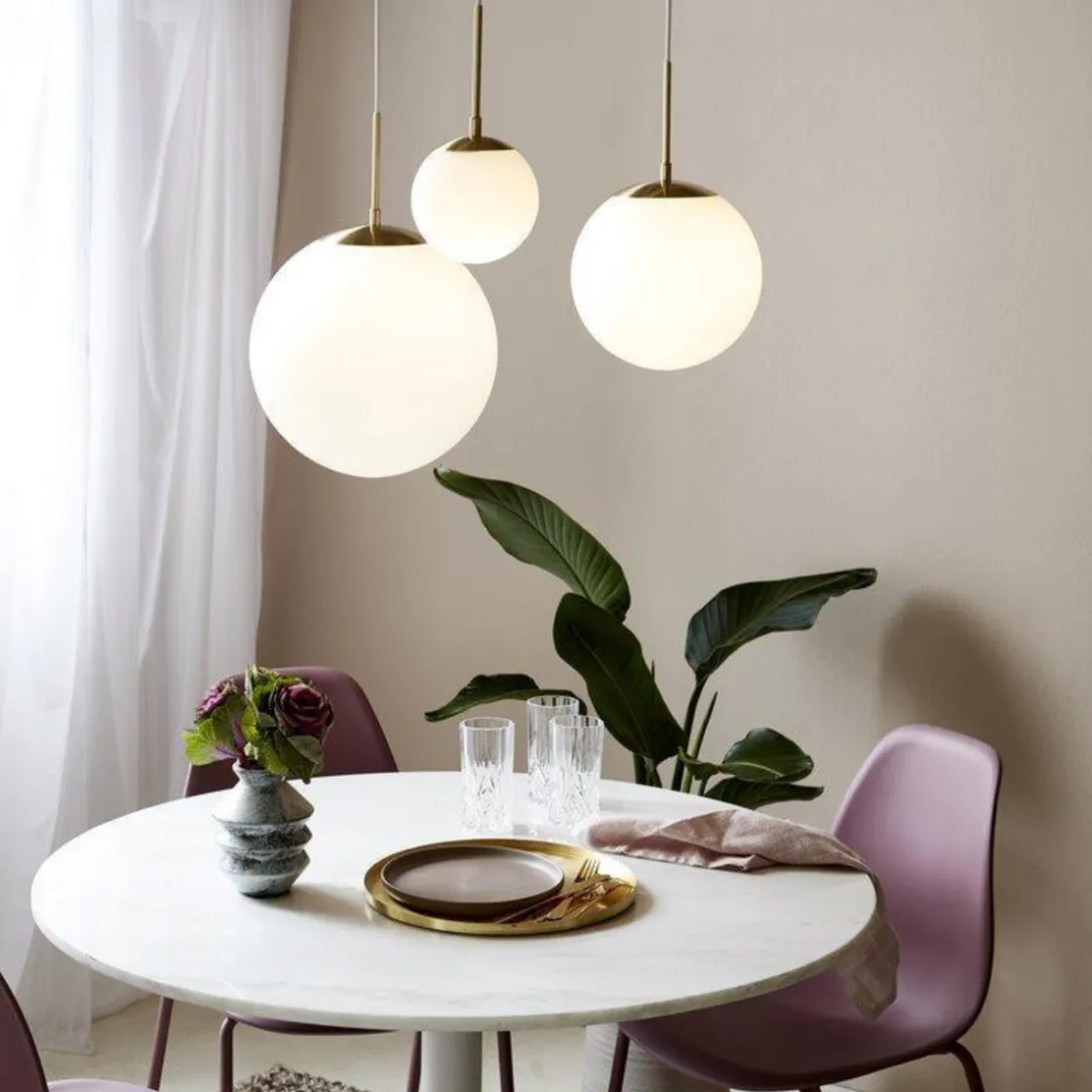 Grant pendel bidrar til en av tidens store designtrender med bruken av messing og hvitt opalglass. En elegant detalj er baldakinen i messing som passer til toppen på lampen og skaper en perfekt helhet. Grant er vakker både enkeltvis og i klynger med flere, og kan med fordel kombineres med de andre pendelstørrelsene i serien.