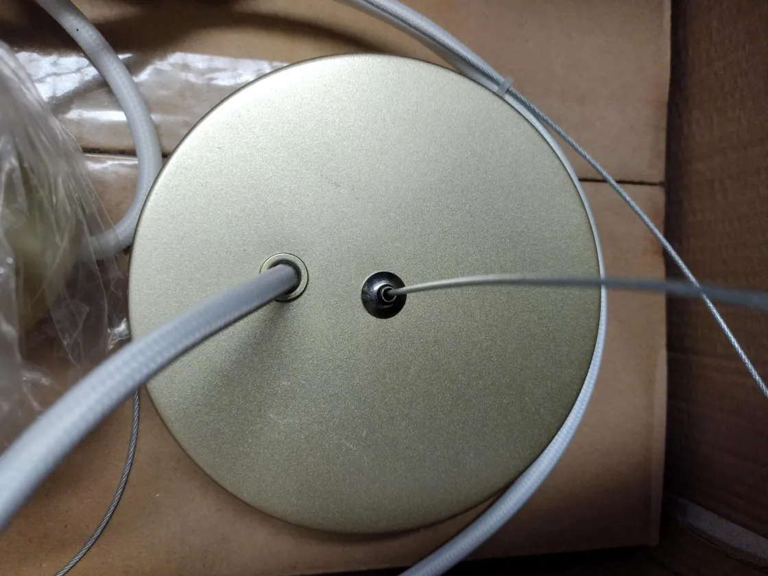 NB! Noen små riper på selve basen som festes til taket, se bilde. Har vært åpnet.