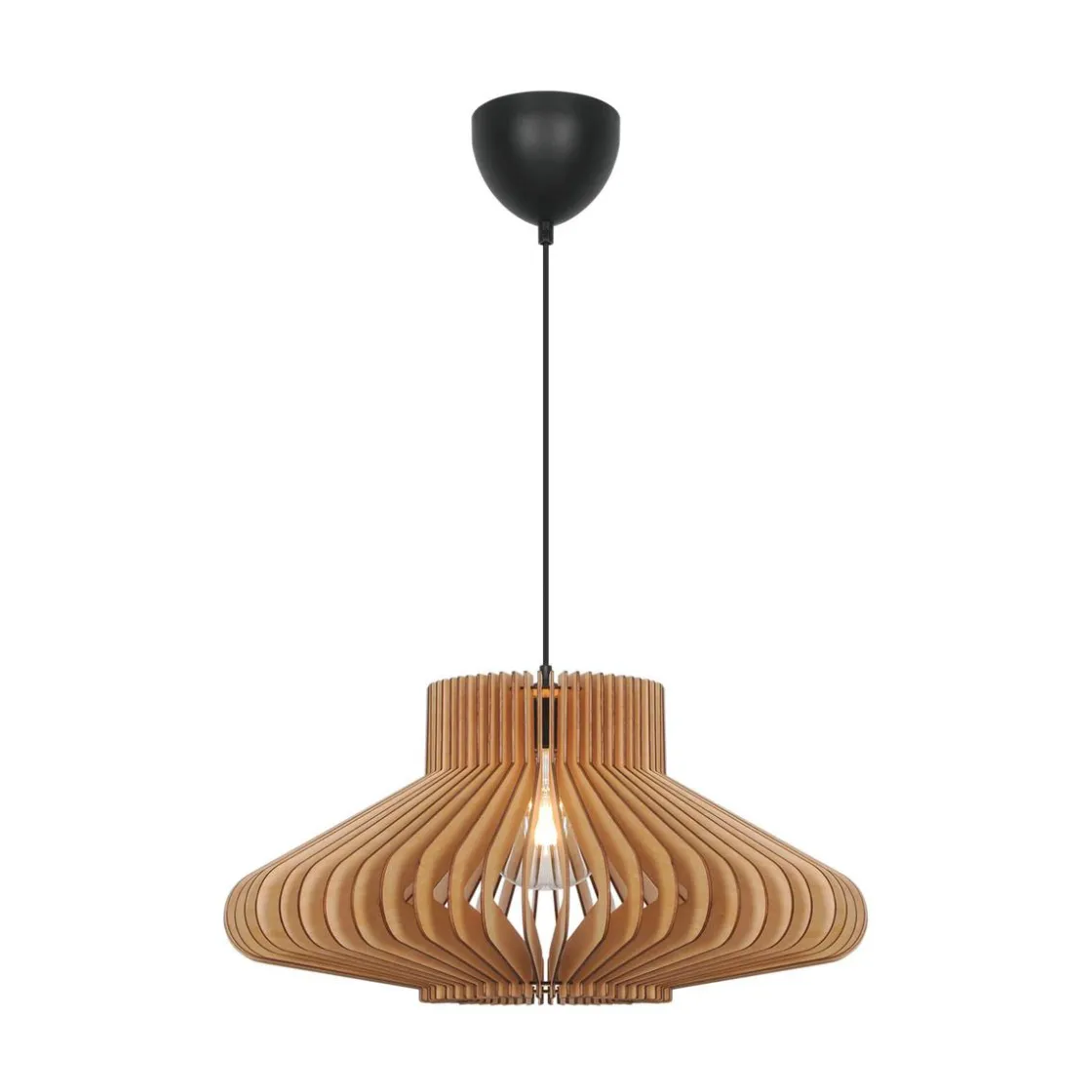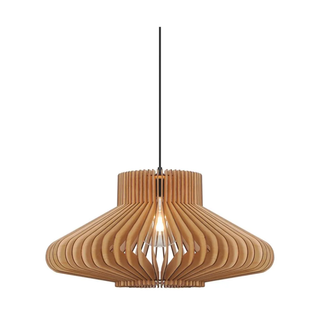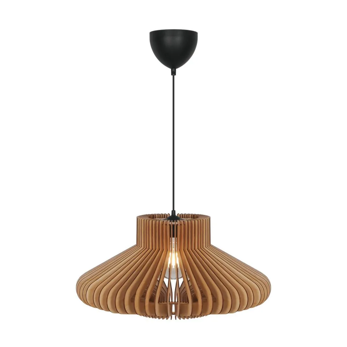 Manago har en skjerm laget av trelameller i en grafisk silhuett som skaper en varm og behagelig lysfordeling. Velg ditt eget uttrykk ved å montere trelamellene på den måten du foretrekker. Perfekt til å henge i et hjørne eller over et spisebord.