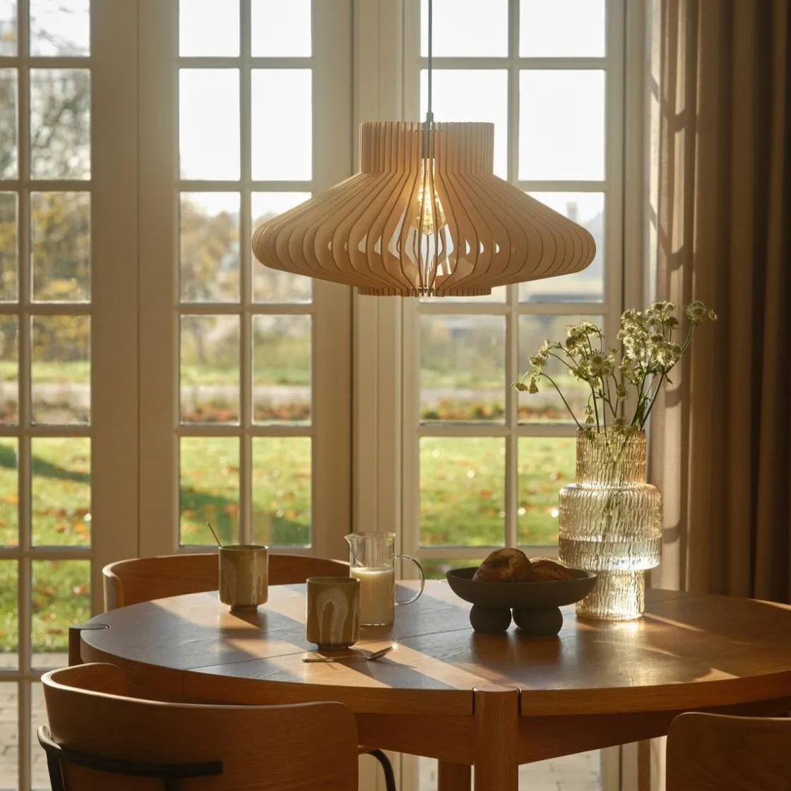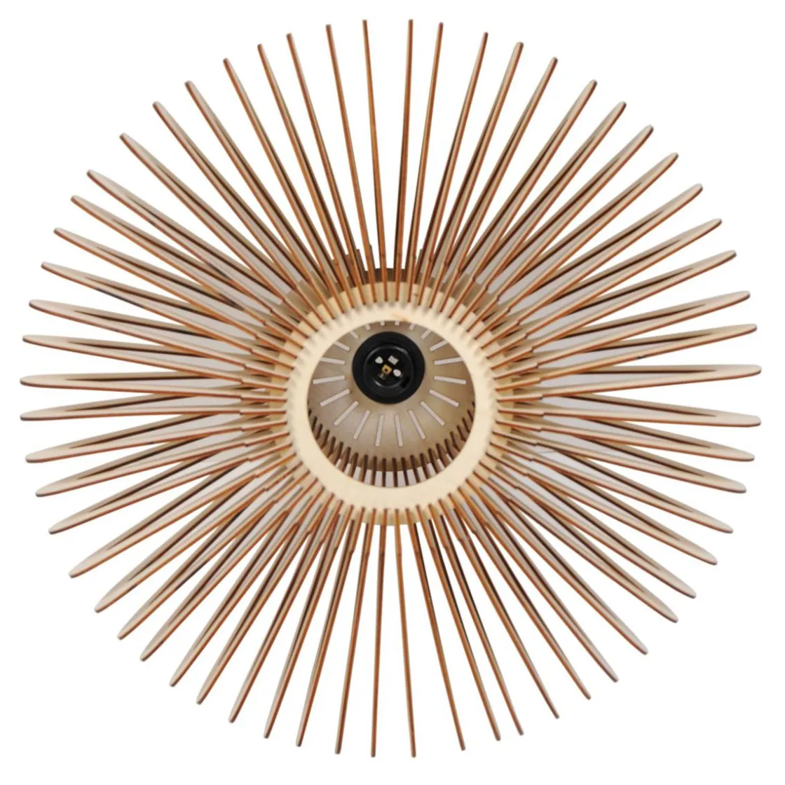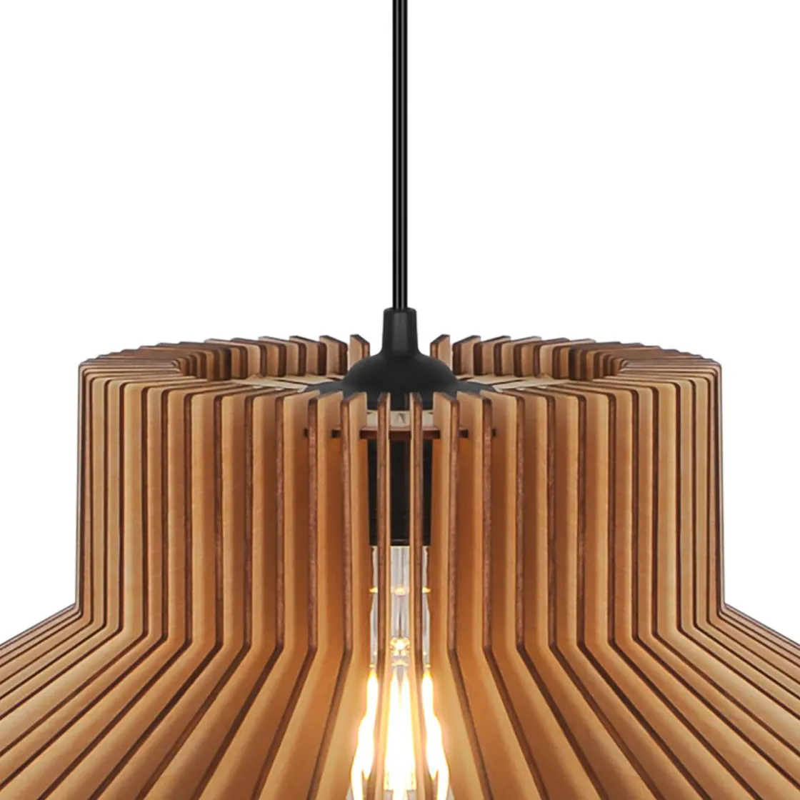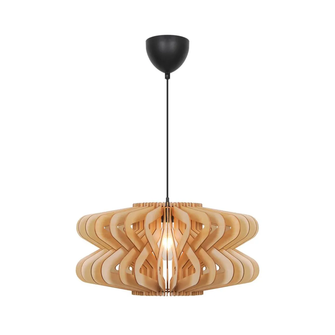 Manago har en skjerm laget av trelameller i en grafisk silhuett som skaper en varm og behagelig lysfordeling. Velg ditt eget uttrykk ved å montere trelamellene på den måten du foretrekker. Perfekt til å henge i et hjørne eller over et spisebord.