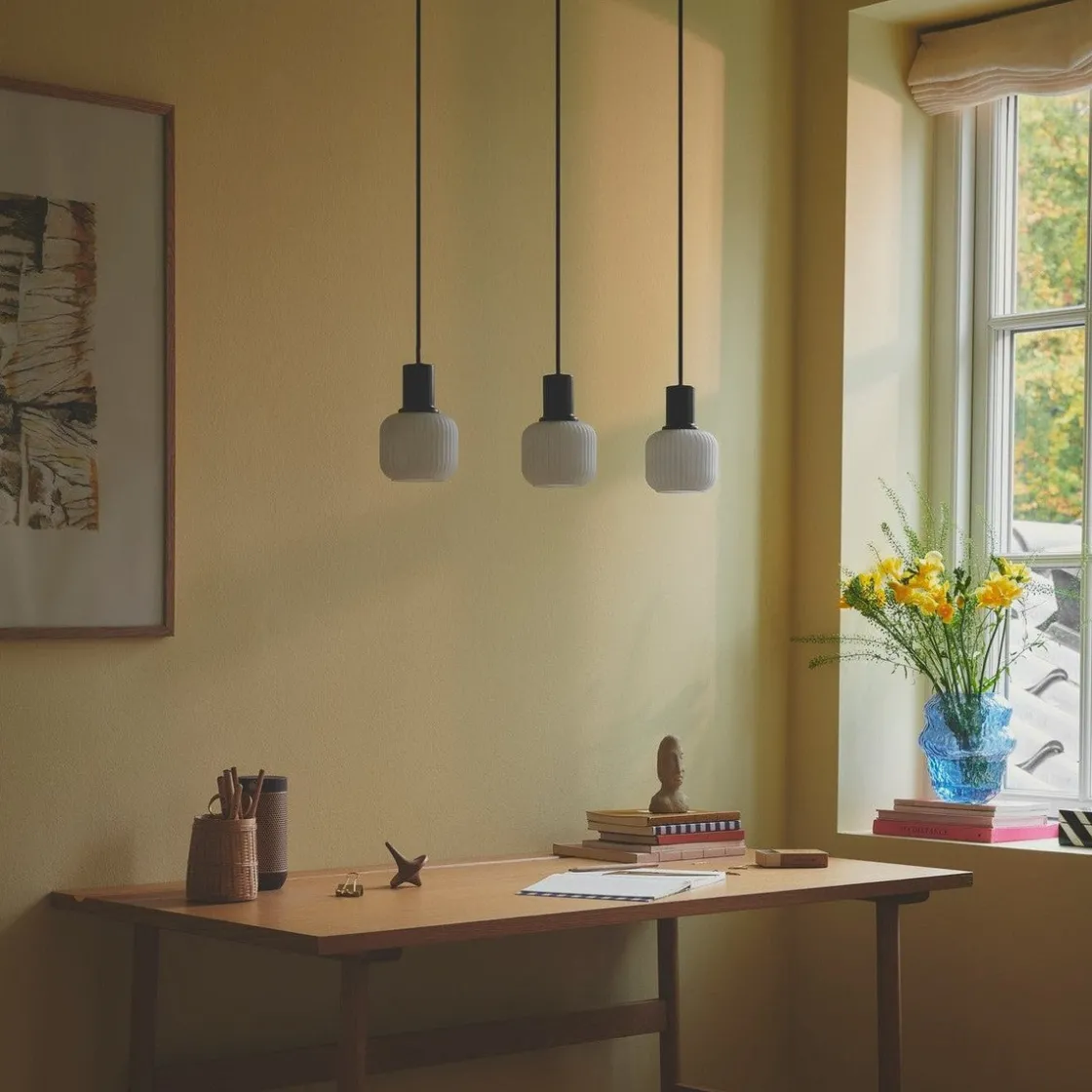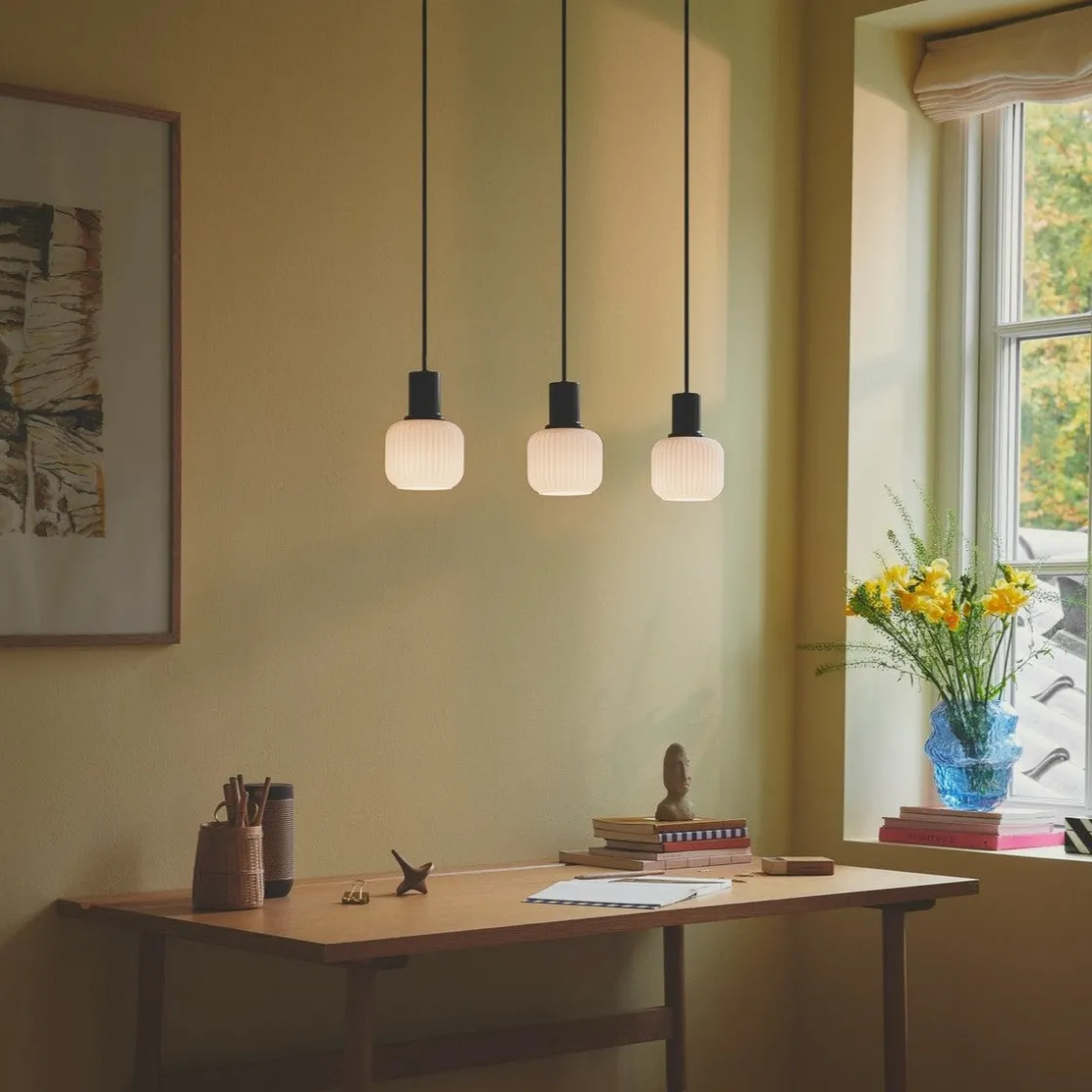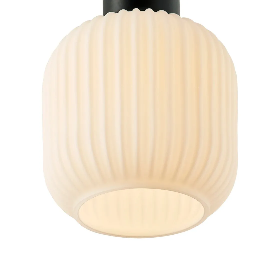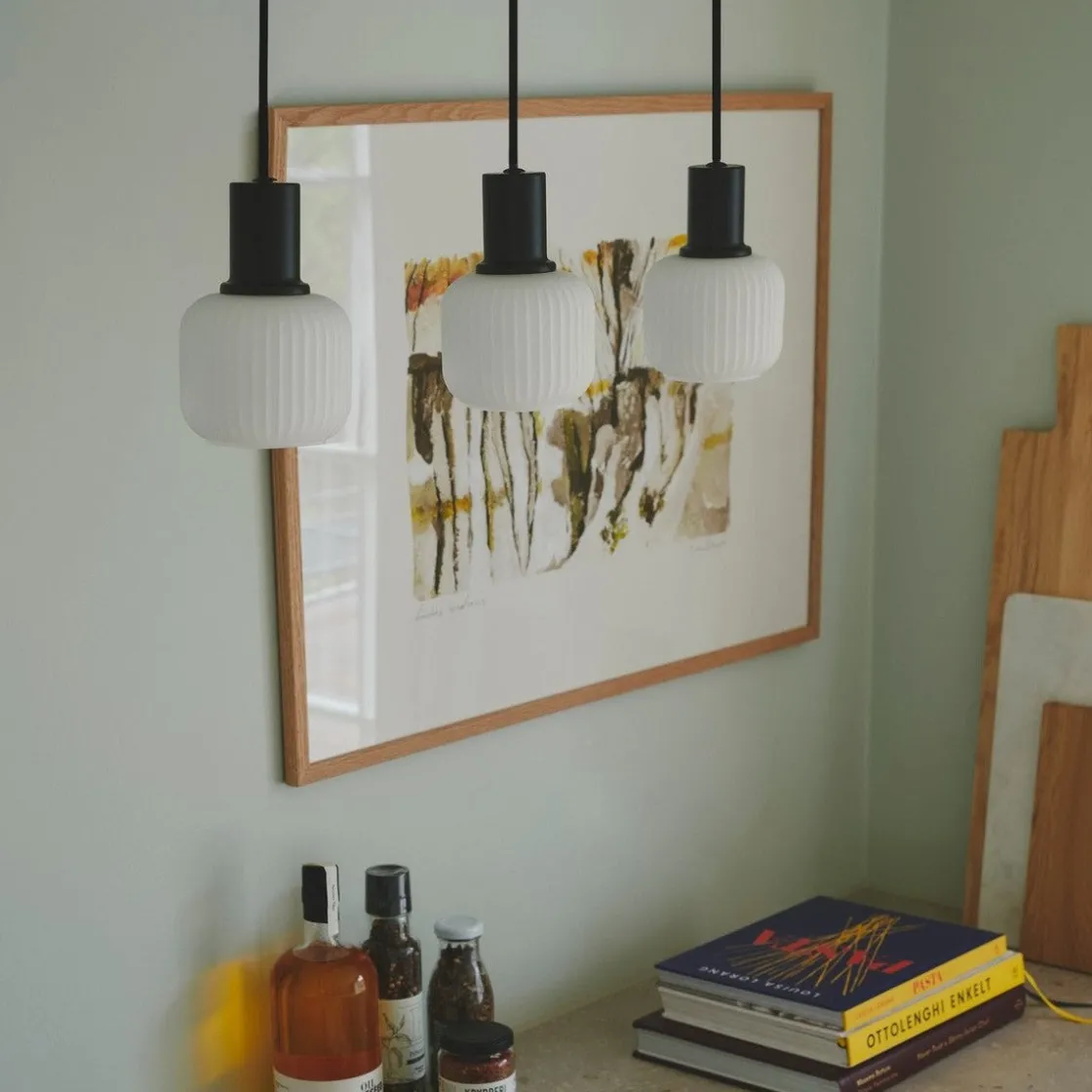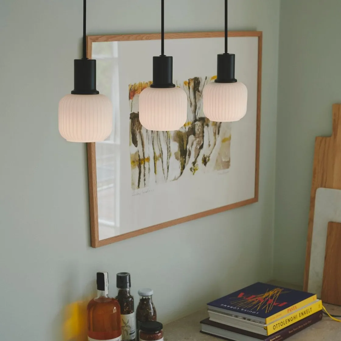 Milford Mini er en dekorativ serie hvor det opalhvite munnblåste glasset skaper et mykt og nesten «plissert» uttrykk. Designet er enkelt og moderne med en miks av opalglass og svart metall. Kombinasjonen av de organiske formene og den riflede overflaten skaper eleganse og lar et mykt lys spre seg i rommet.