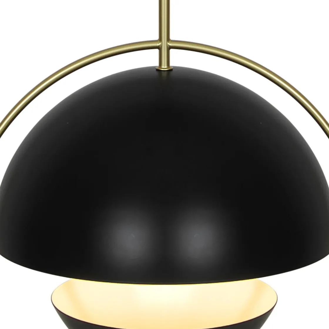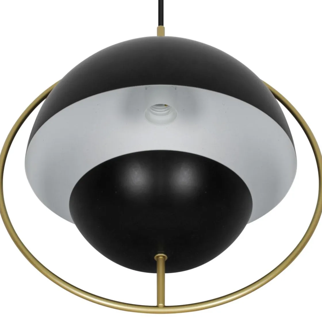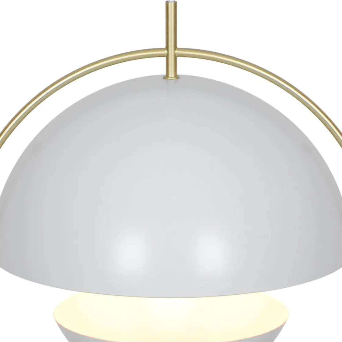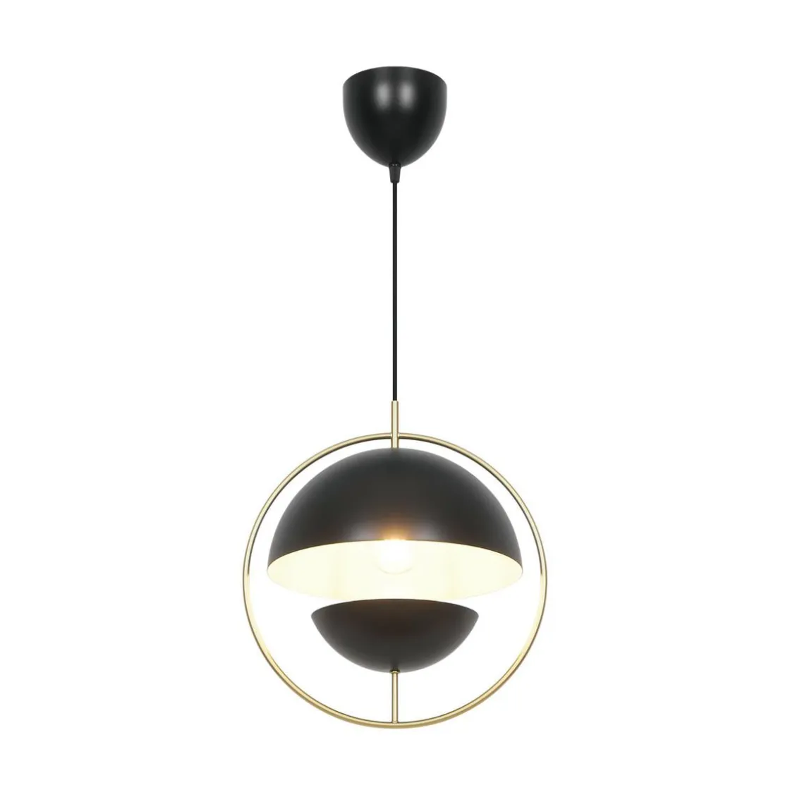 Pendellampen Tavia har et dekorativt design, som kombinerer minimalisme med et glamorøst preg. De to runde skjermene er plassert overfor hverandre, omsluttet av en elegant messingring. Gir et behagelig, diffust lys.