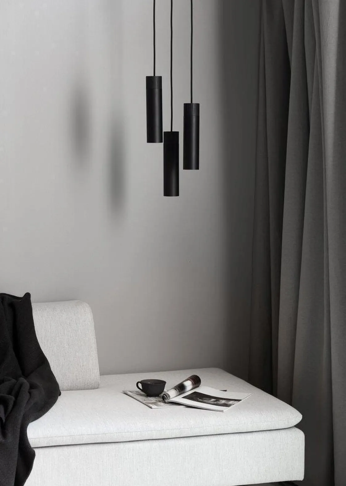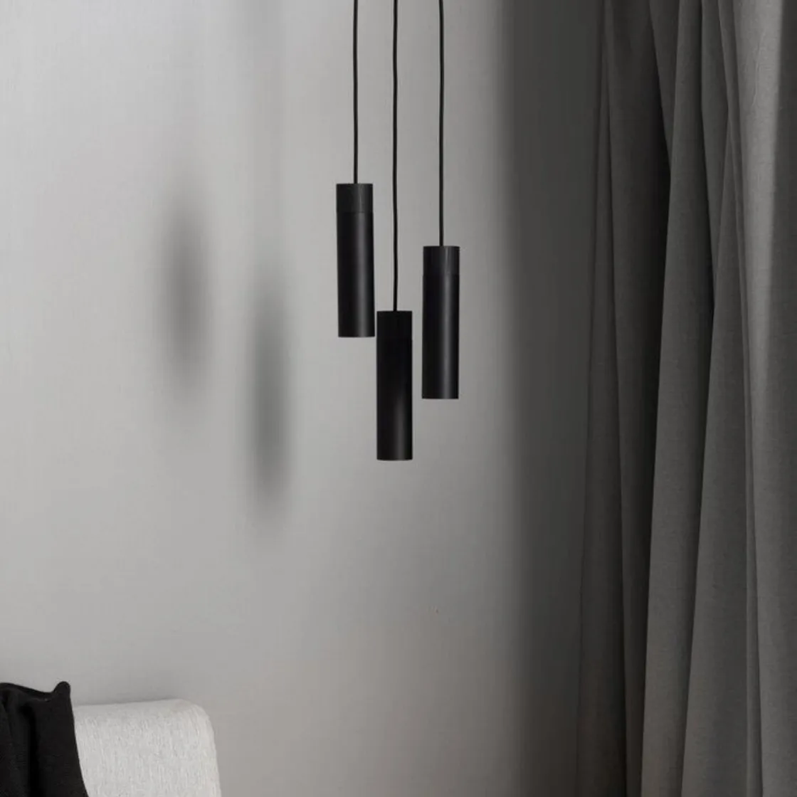 Tilo rondell med tre lampehoder i sort metall og lys ask er som et lysende kunstverk i hjemmet. Bruk den for eksempel til å lyse opp et mørkt hjørne i stuen, der den gir et fint lys og et flott visuelt uttrykk.