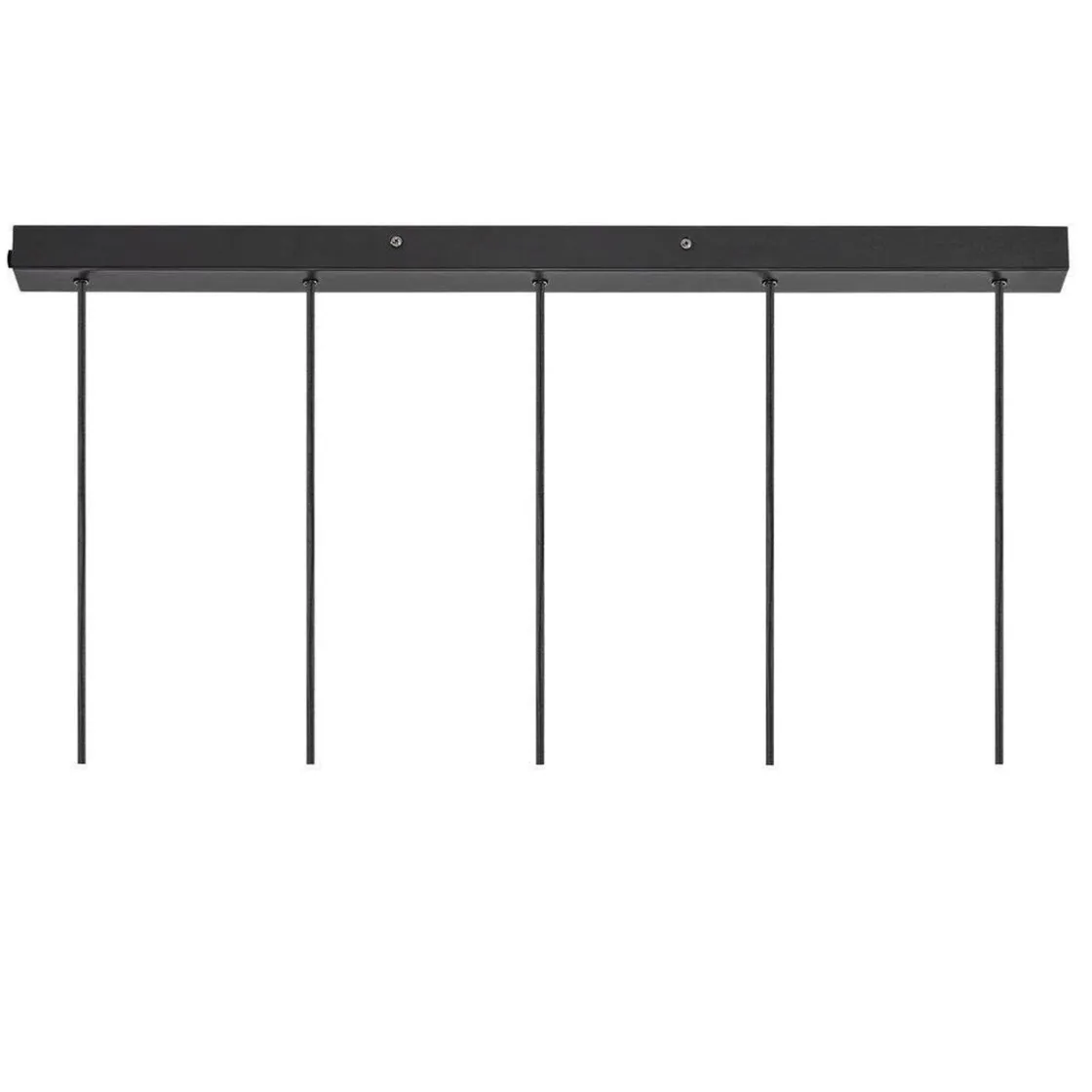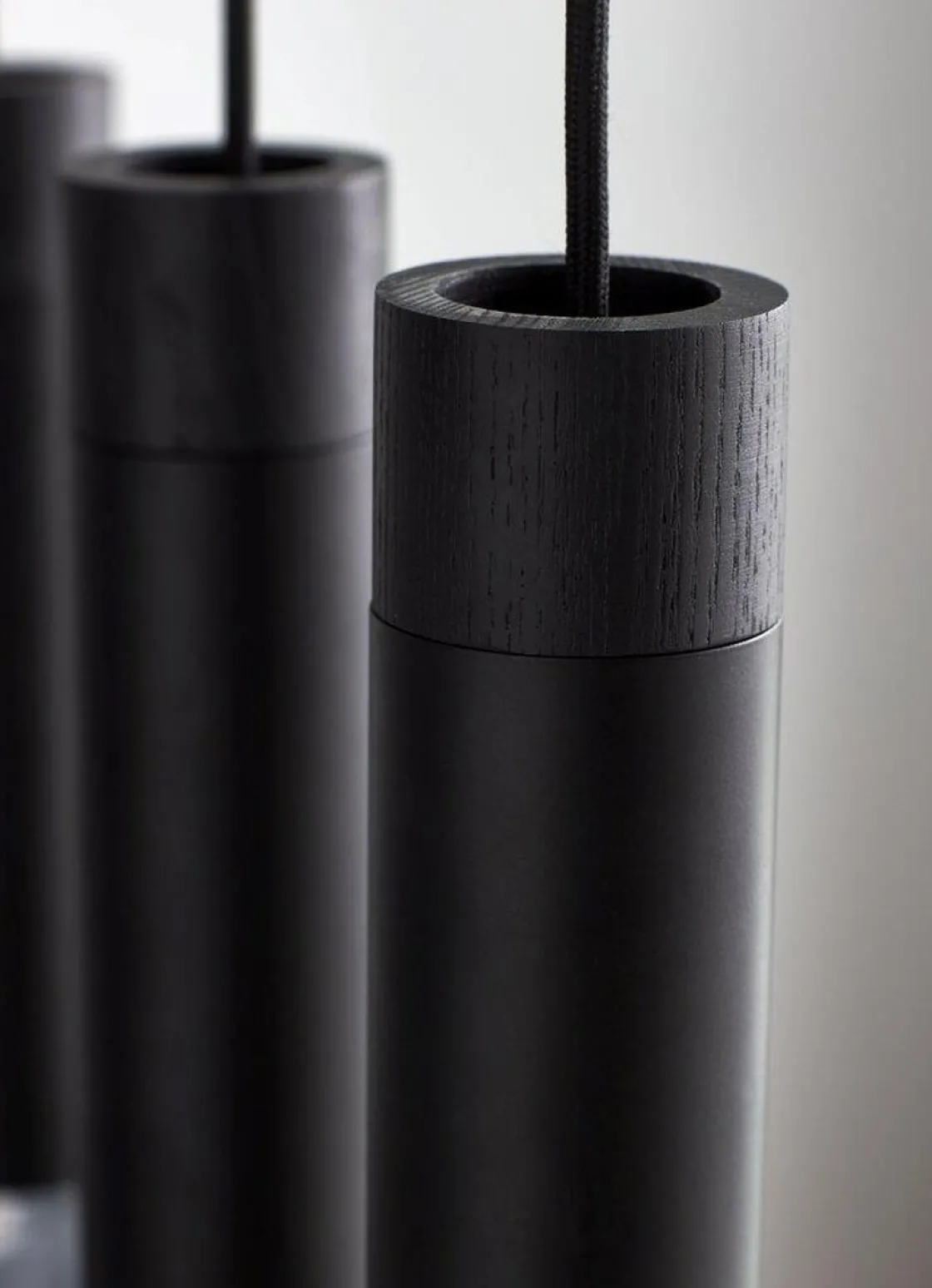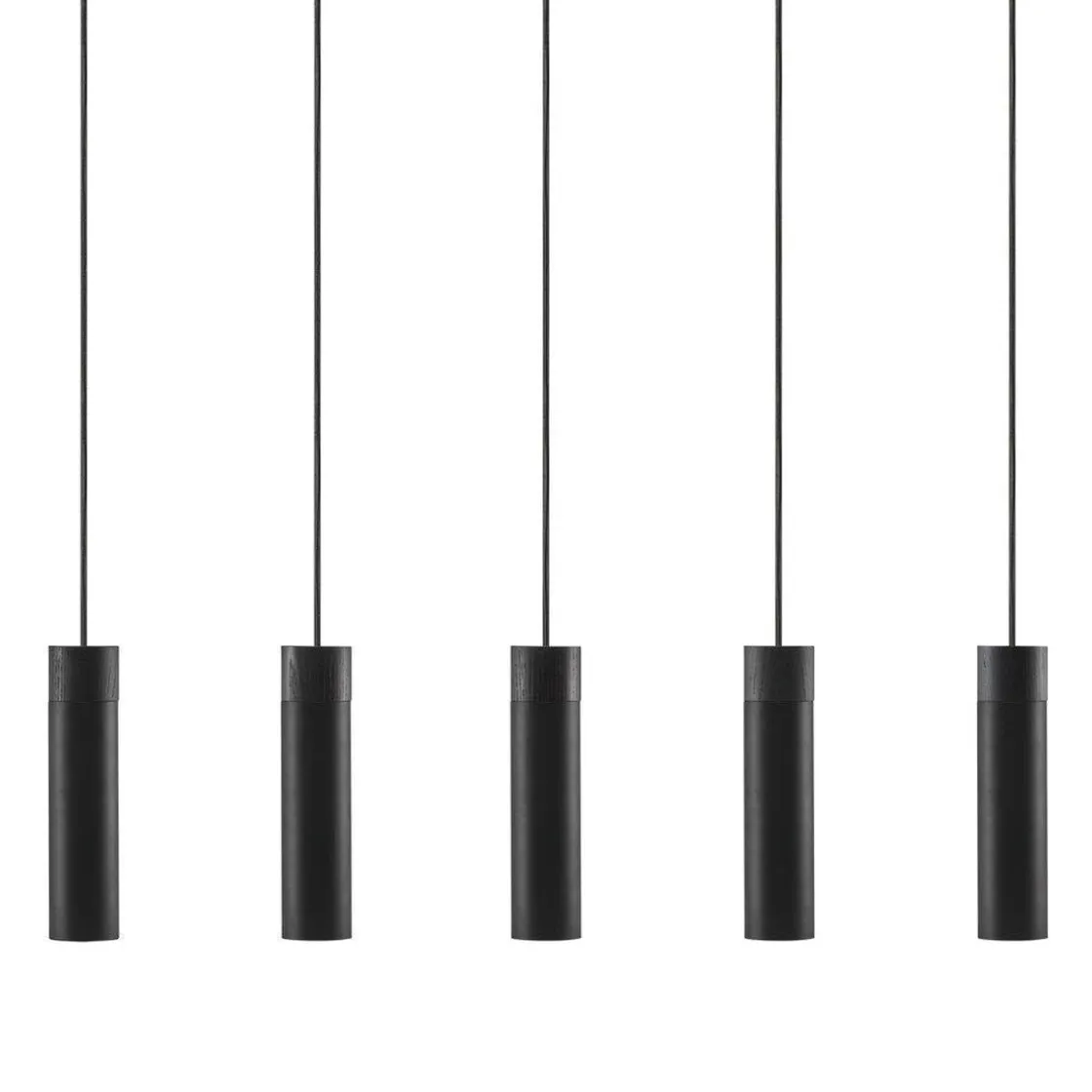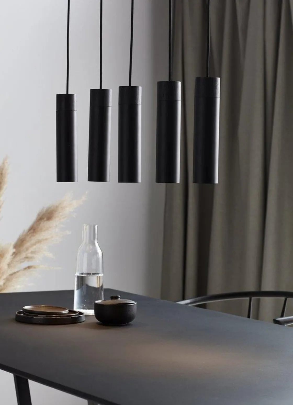 Tilo 5-pendel i svart metall og svartmalt ask er den perfekte lampen over et langt spisebord, siden alle de fem lampehodene gir et godt funksjonelt nedadrettet lys.