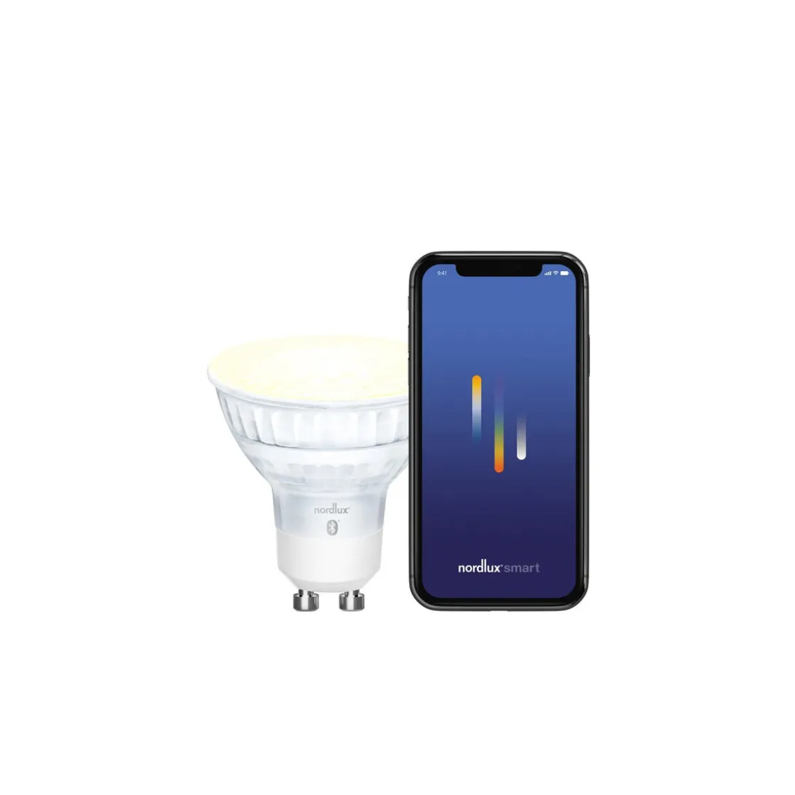 Smart pære fra Nordlux som kobles sammen med Nordlux Bridge for styring via mobil telefonen.