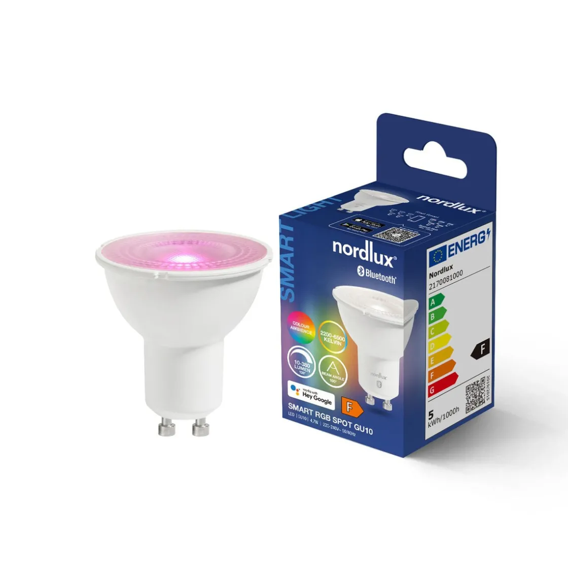 Smart Colour GU10-spot som du enkelt kan stille inn på den helt rette stemningen – fra kjølig til varmhvit eller velg mellom mer enn 16 millioner farger for å skape en hyggelig atmosfære. Reduser eller øk lysstyrken med smarttelefonen eller nettbrettet, eller legg til en smart fjernkontroll for å styre lysene uten smarttelefonen.