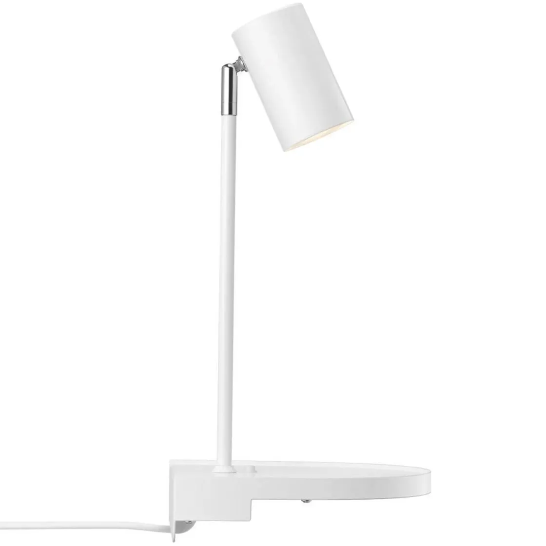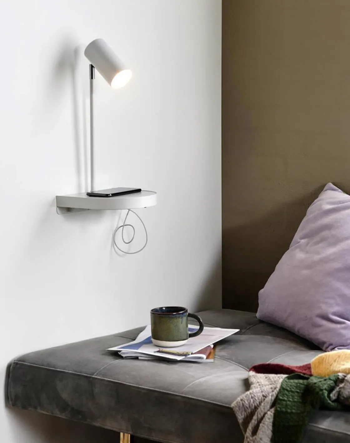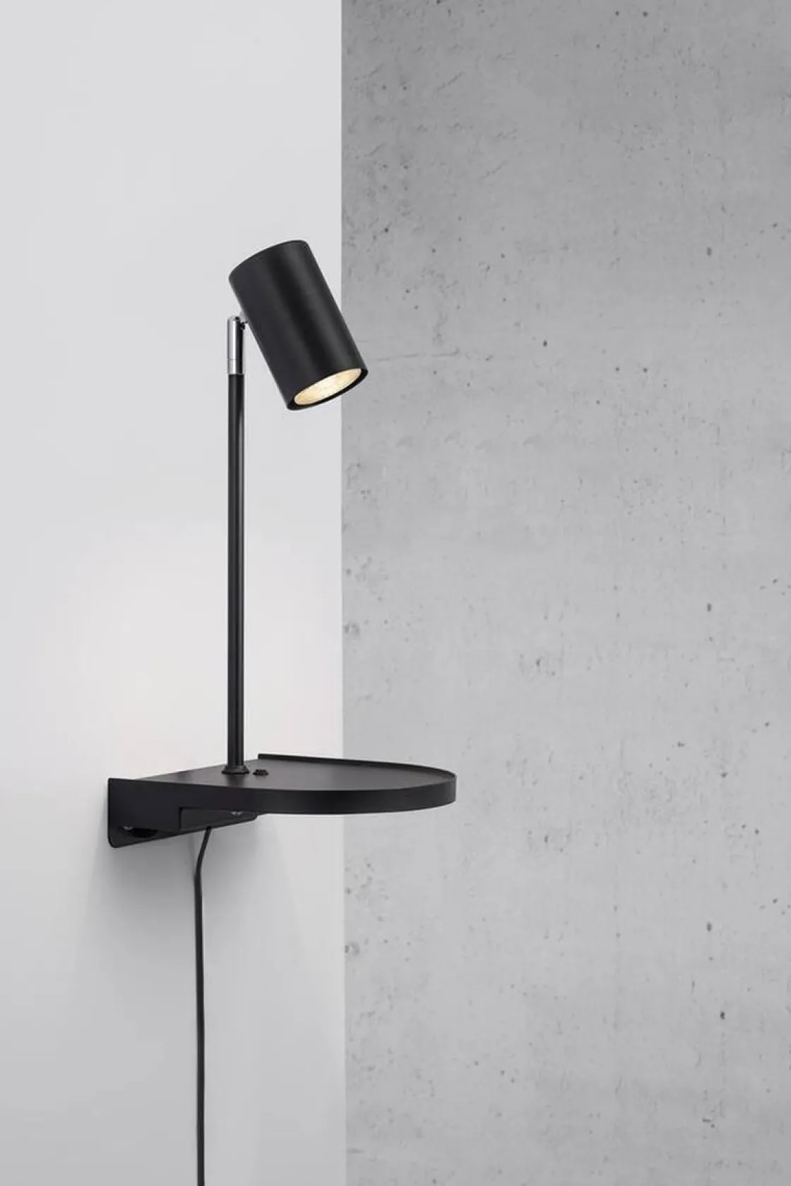 Cody er en multifunksjonell vegglampe i et kompakt, minimalistisk design. Den praktiske hyllen er perfekt for å holde det du trenger mest, innen rekkevidde. En USB-port under lampen gjør det enkelt å lade telefonen eller en annen enhet. Du kan enkelt justere lampehodet for et praktisk og retningsbestemt lys.