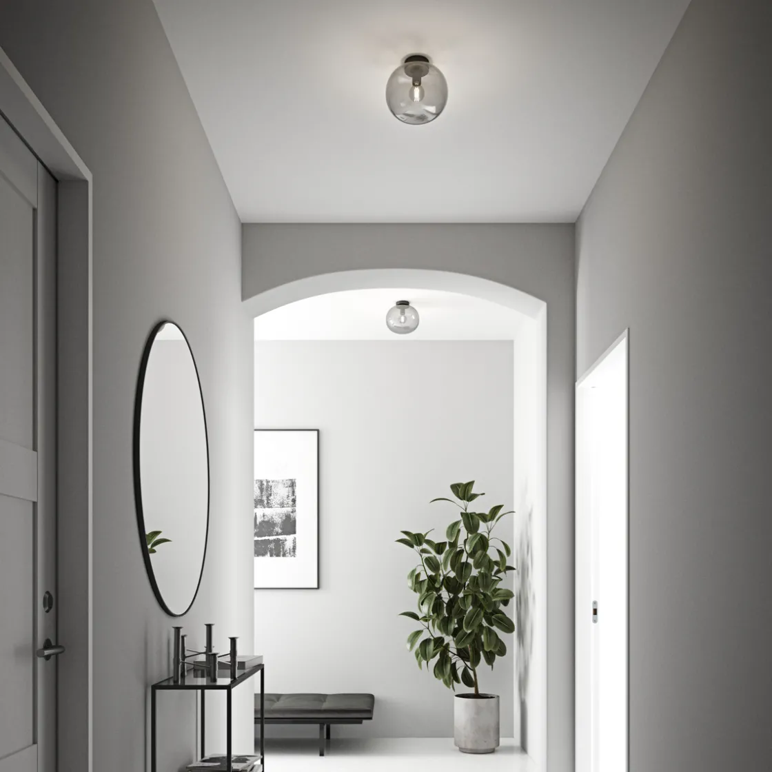 Alton er en nydelig taklampe som finnes i 2 ulike modeller Opal/Messing og Sort/Røykfarget glass.