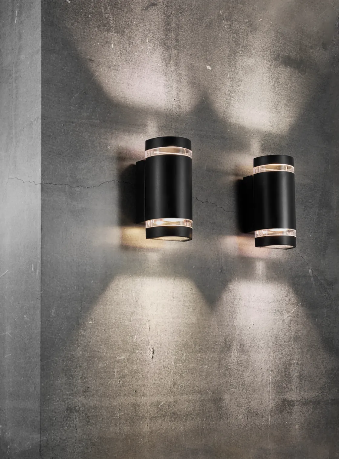 Focus Duo-vegglampen i sort, er flott og moderne samt egnet til utendørsbruk. Lampen lyser både opp og ned.