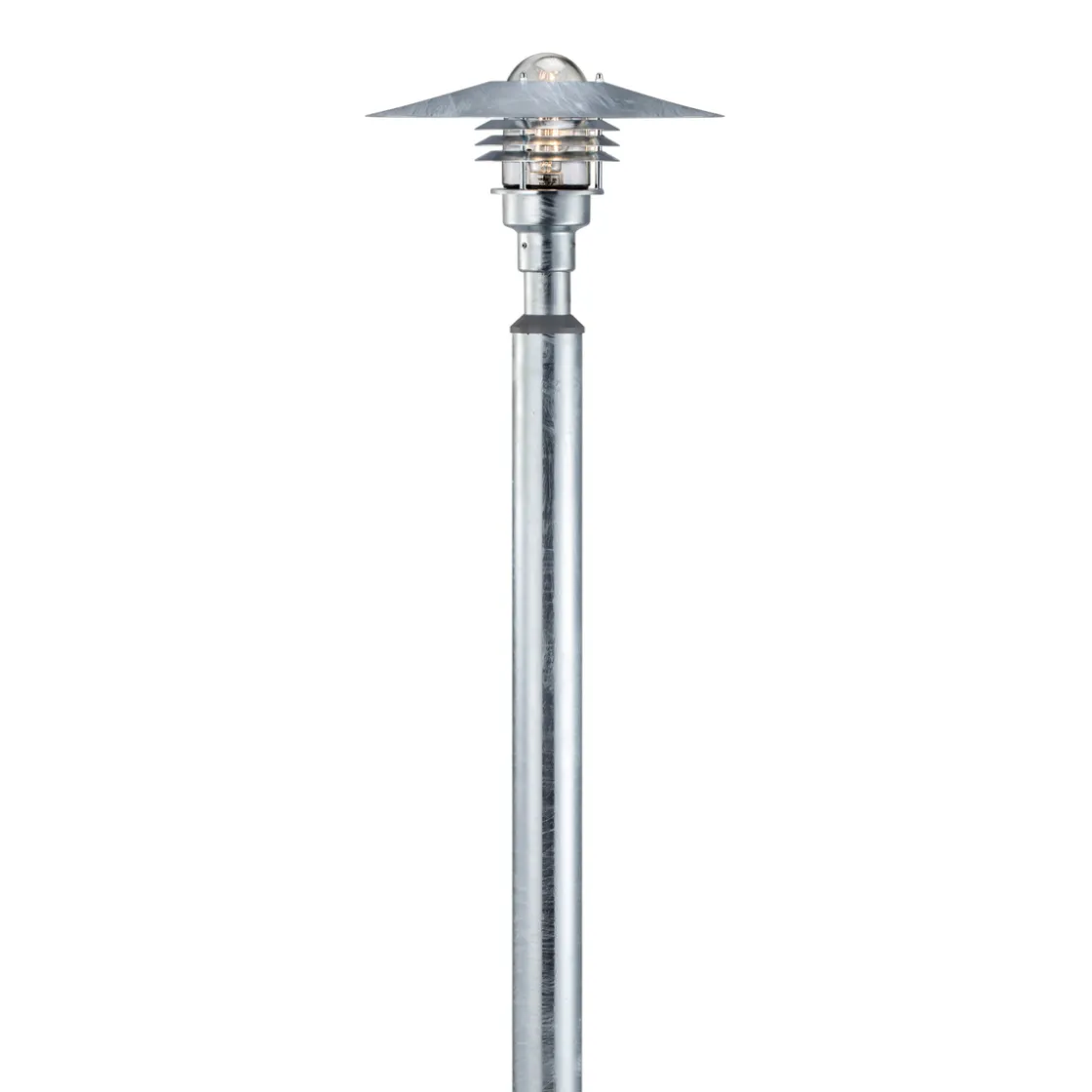 Pent designet lyktestolpe i utendørsserie i galvanisert stål, med justerbar høyde.
