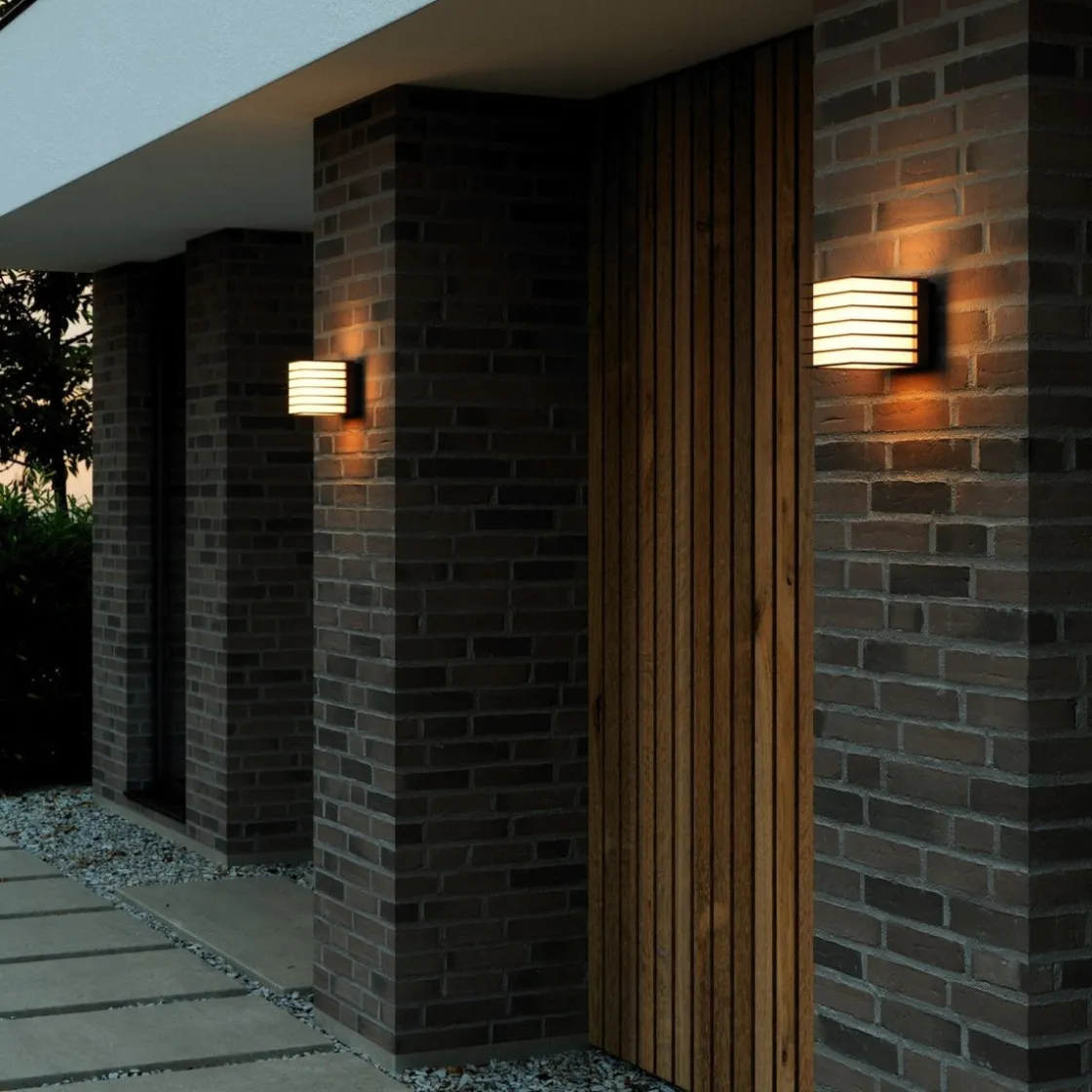 Fluctus er et moderne, nesten kubistisk utendørs lysdesign. Det firkantede, strømlinjeformede designet med metall-lameller vil komplettere de fleste moderne hjem og gi et mykt og diffust lys ved siden av inngangsdøren, terrassen eller garasjen.