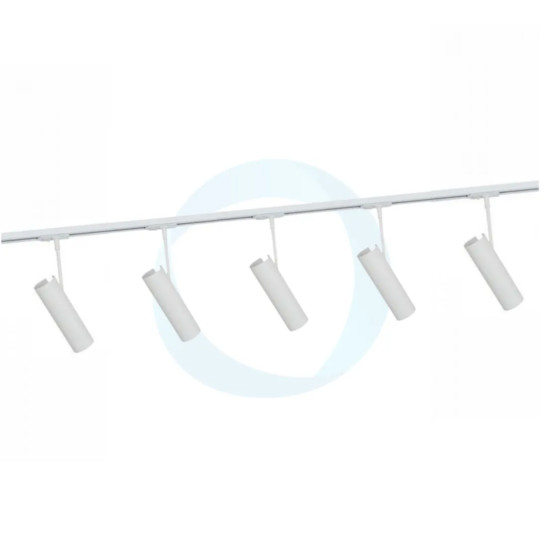 Link MIB komplett spotskinnepakke med 1 skinne à 2 meter, endetilkobling og 5 MIB-spotter. Spottene kan roteres alle veier 355 grader og kan tiltes 90 grader.