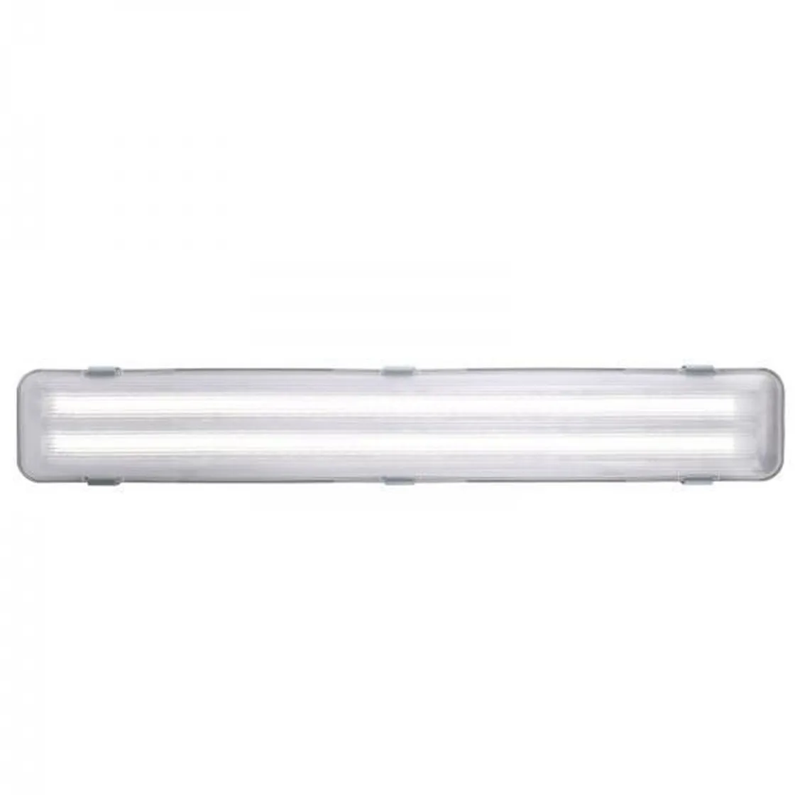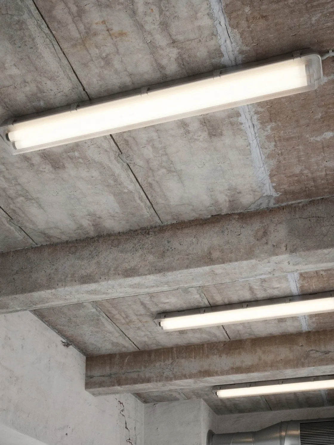 LED-armaturen gir en god arbeidsbelysning og har en høy beskyttelsesgrad, slik at den er velegnet til garasjen, kjelleren eller verkstedet. Lampen leveres med to LED-lyskilder, som har lavt energiforbruk og en levetid på opptil 15.000 timer.