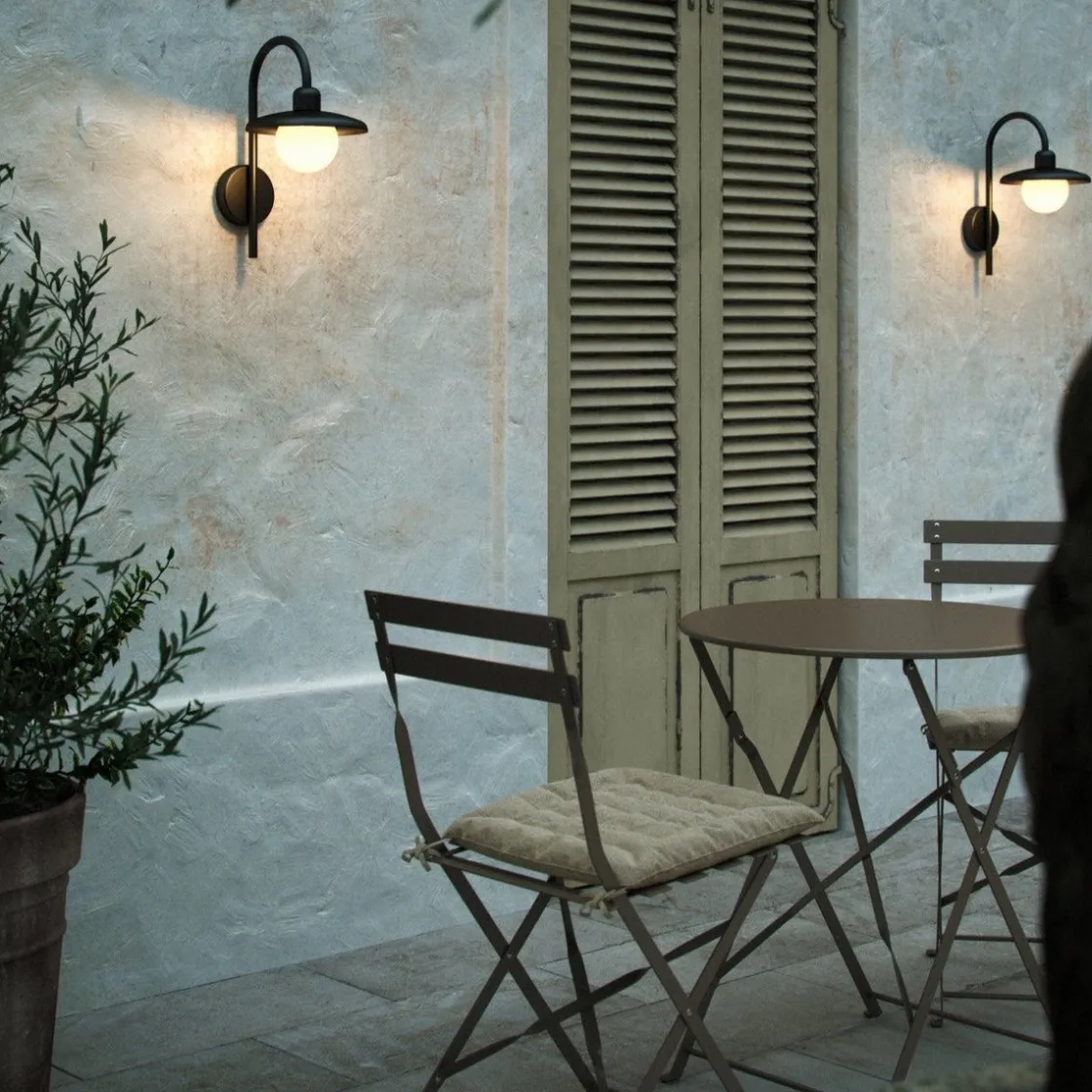 Berlo er en klassisk vegglampe med elegante, buede linjer og et vintage-lignende, romantisk designuttrykk. Den store diffusoren gir et behagelig lys som ikke blender, og lampen gir et godt og praktisk utelys.
