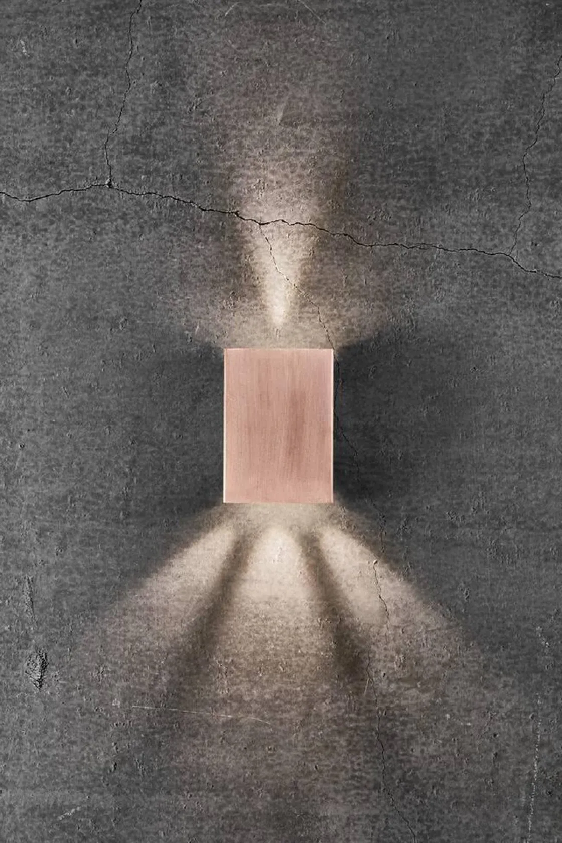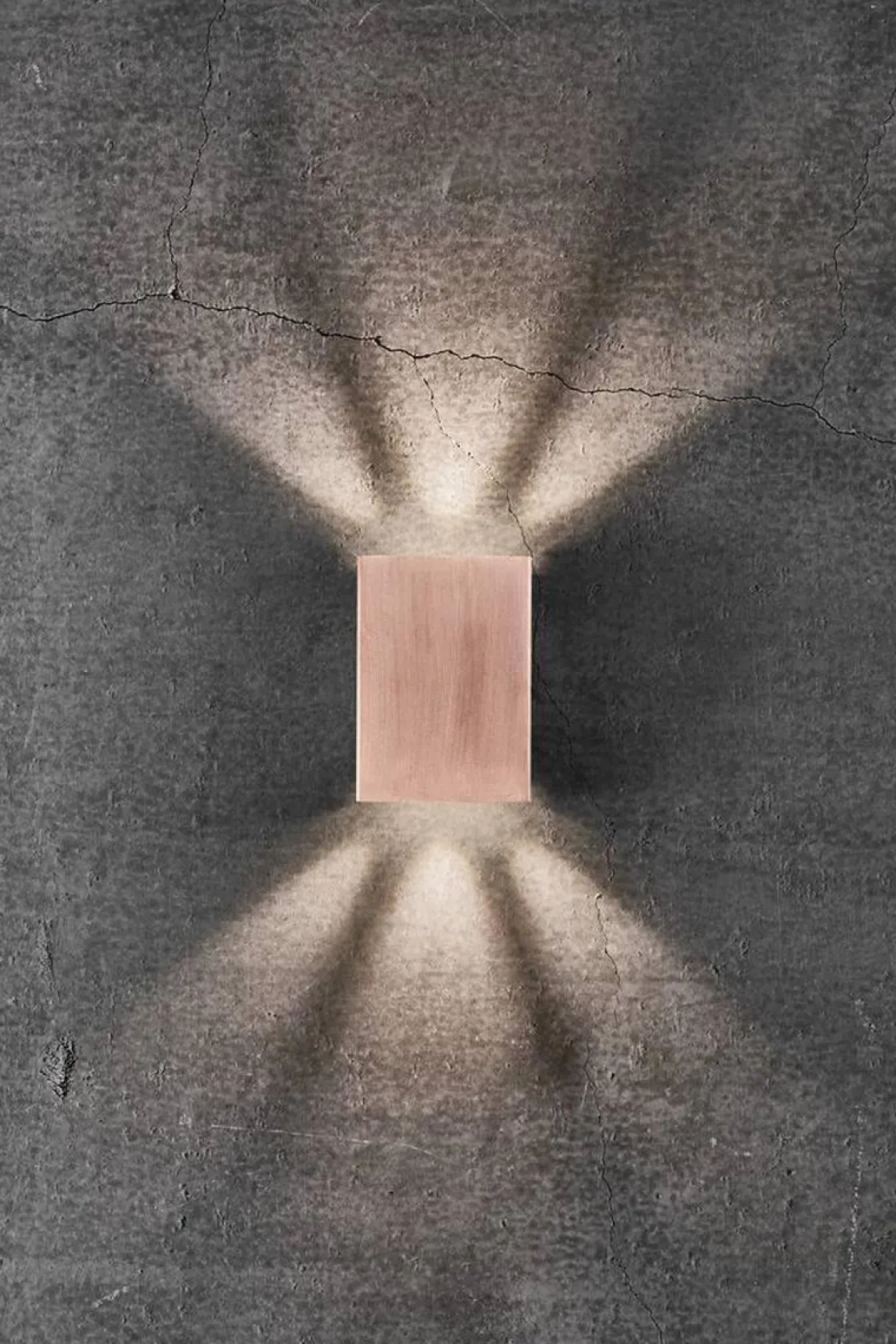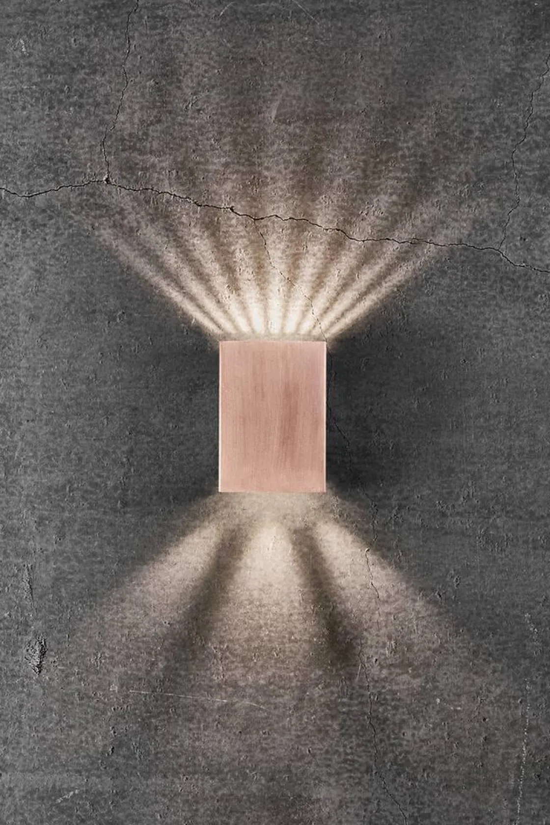 Denne lampen er en kun 1 cm bred miniatyrutgave av vår tradisjonelle Fold lampe som gir nye anvendelsesmuligheter. Bruk Fold i corten som orienteringslys nederst på veggen eller som et vakkert lysende kunstverk på badet eller i gangen.