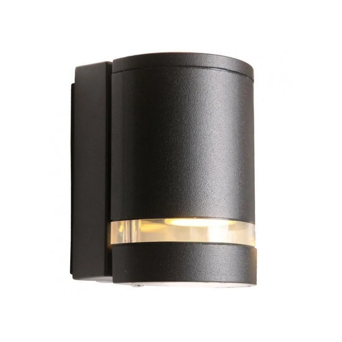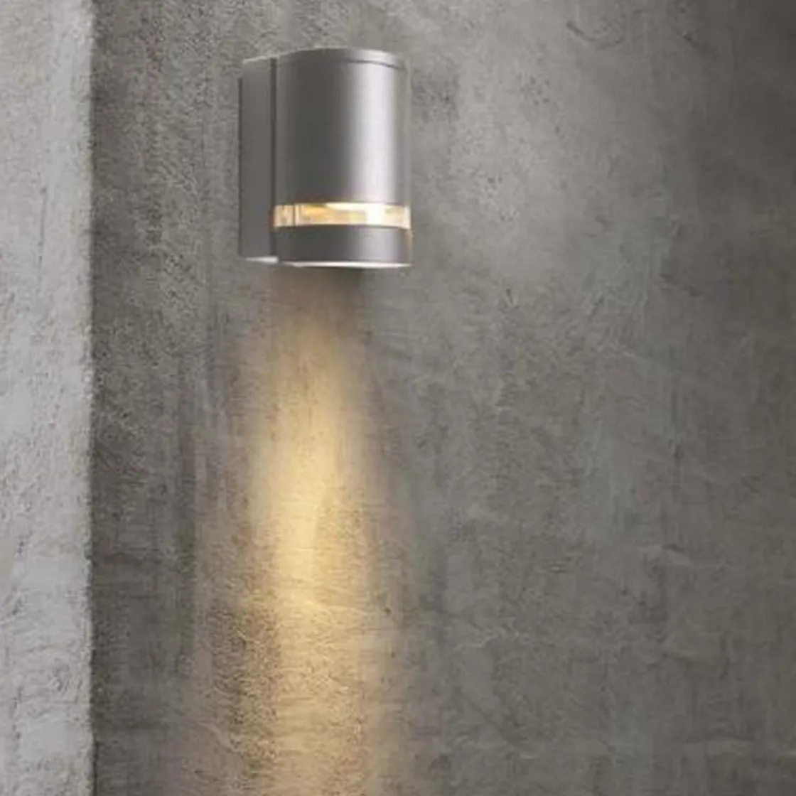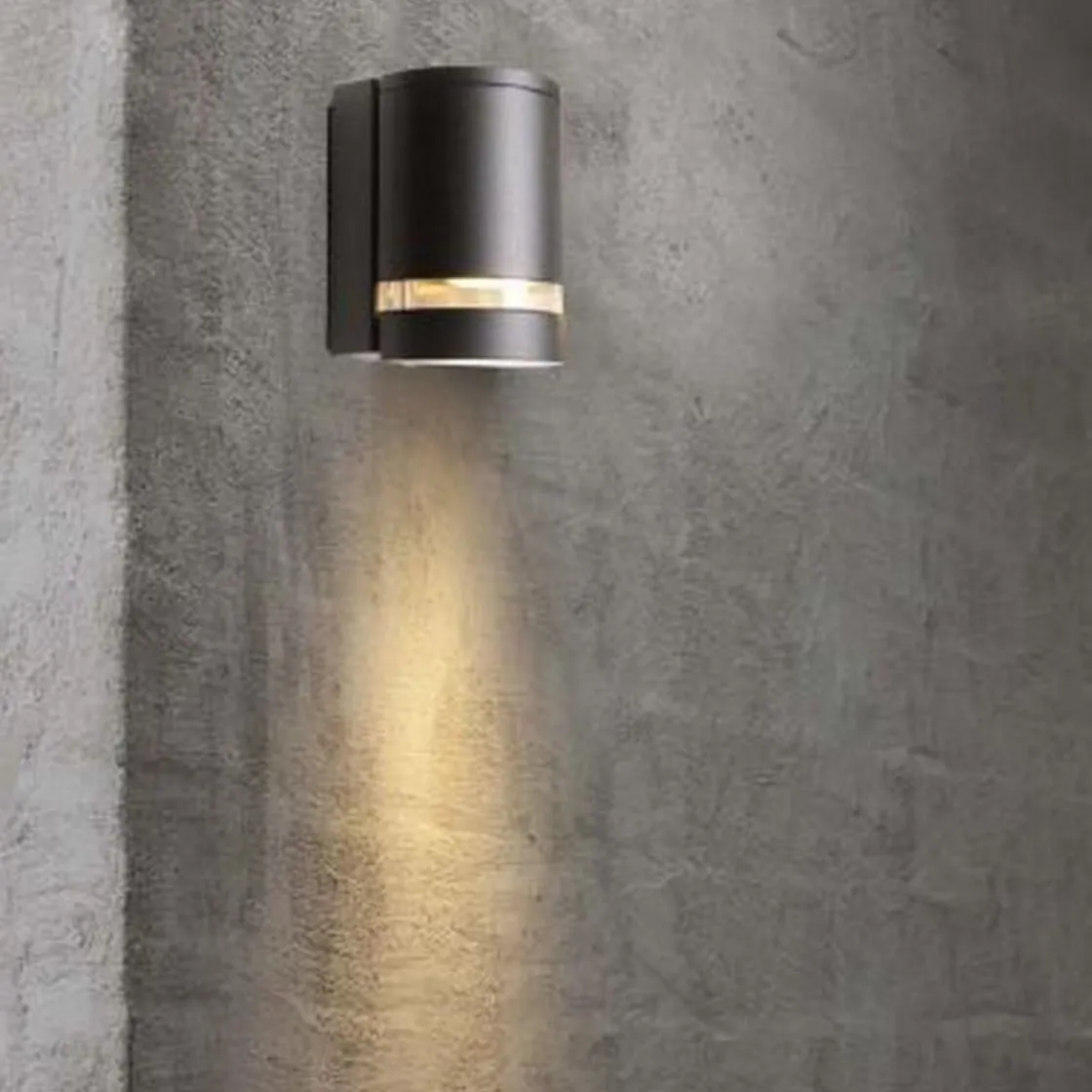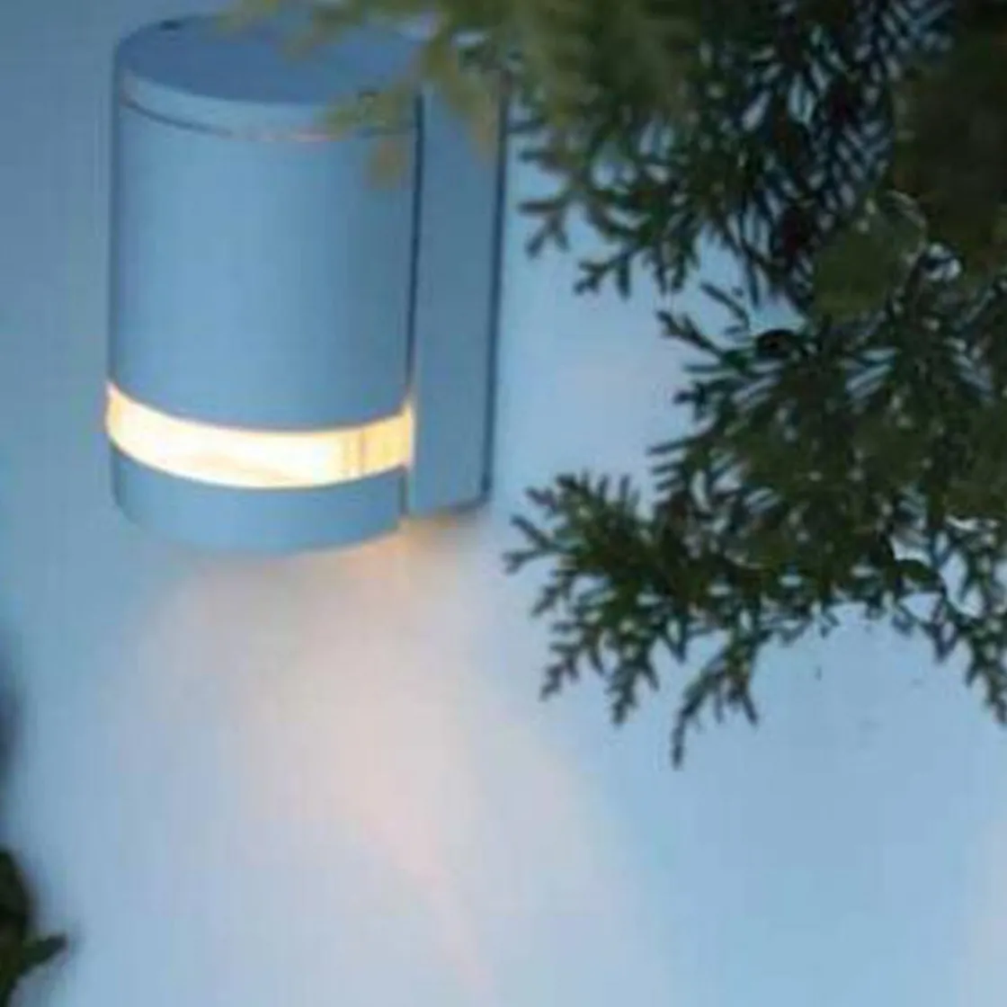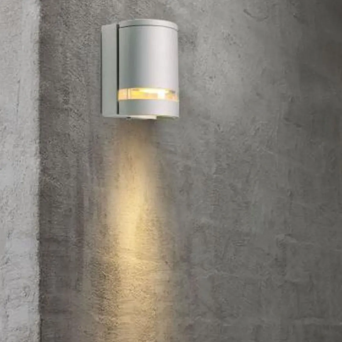 Moderne utelampe med mulighet til til å bruke ledpære. Lampen lyser nedover veggen.