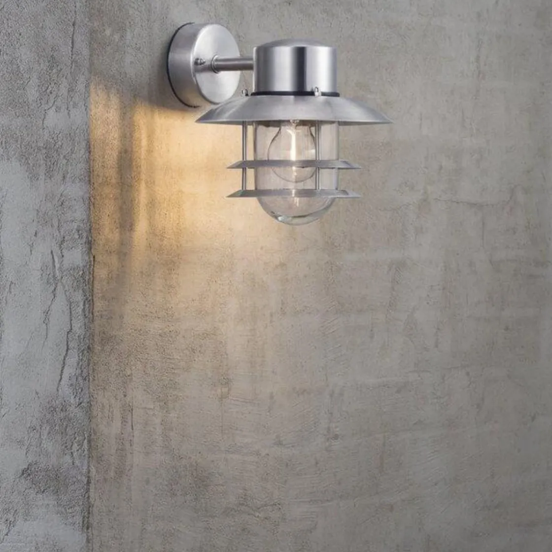 Moderne innbydende og stilfull vegglampe, leveres galvanisert stål. Lampen er vendt ned