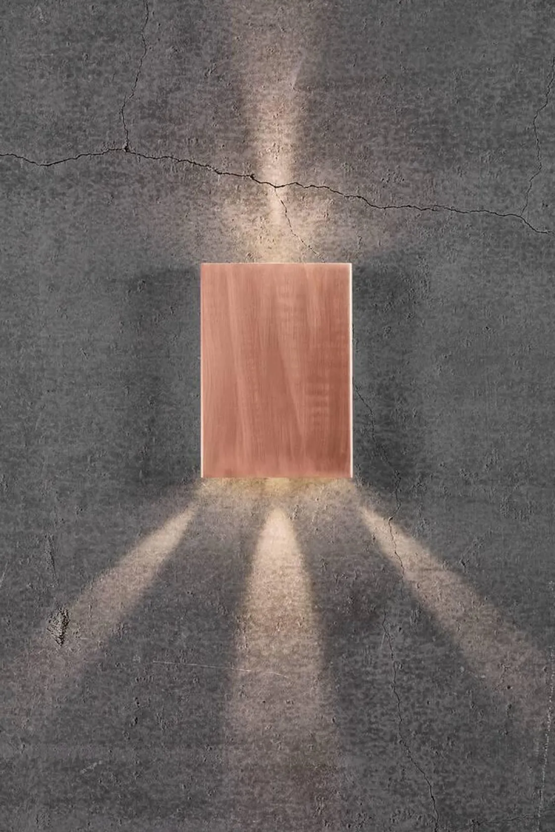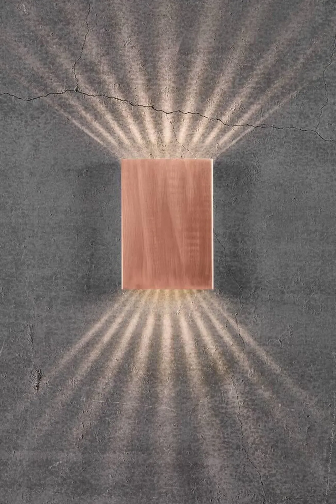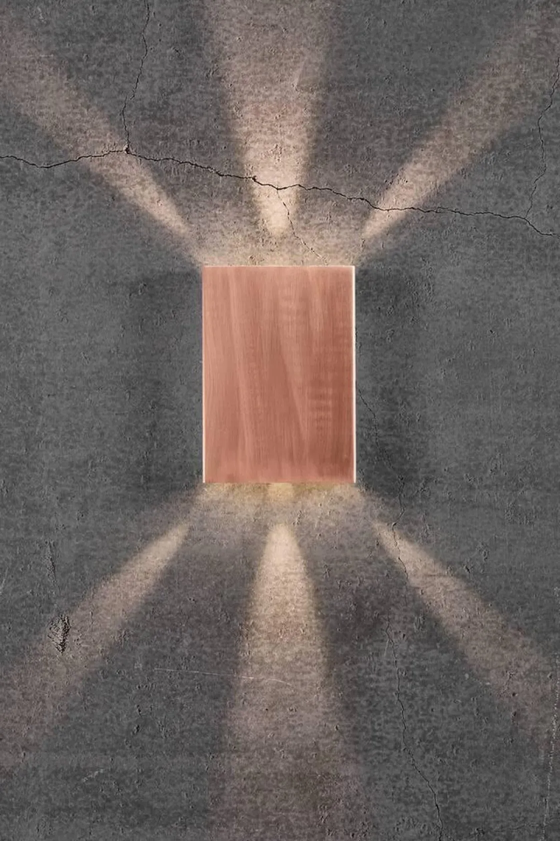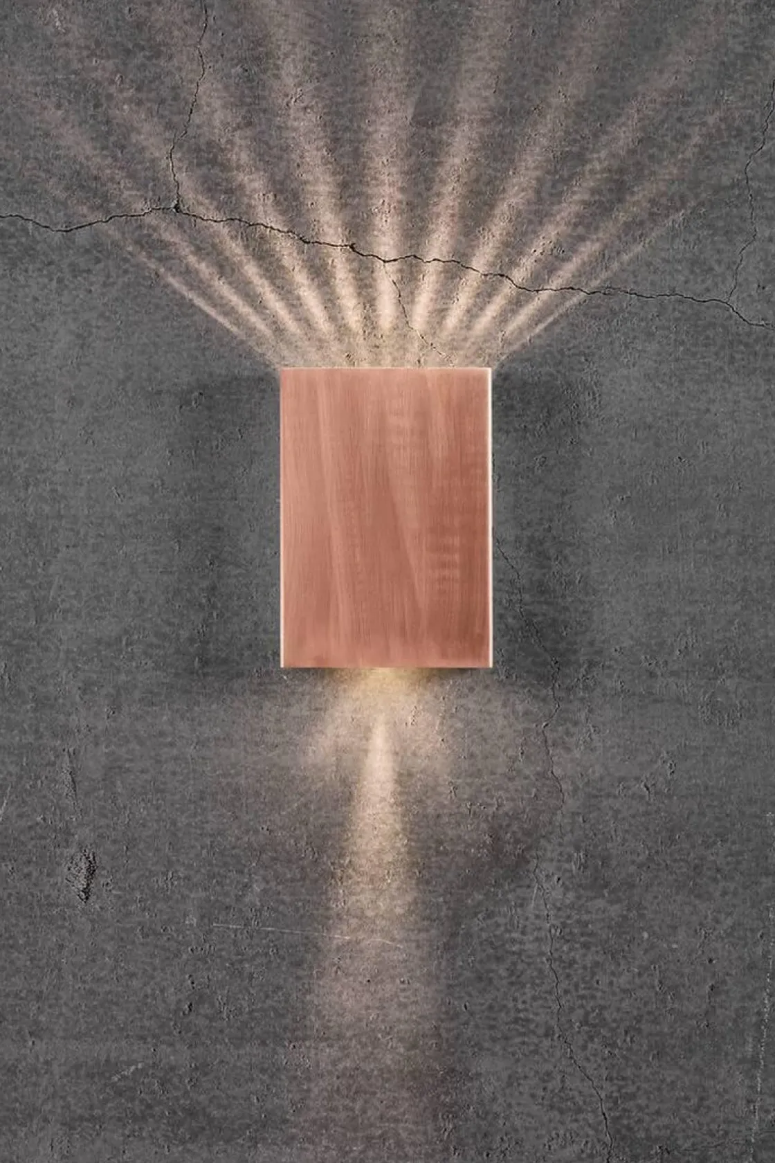 Designet er både dekorativt og skulpturelt, noe som gjør Fold vegglampe i kobber velegnet både inne og ute. Kobber hører til familien av motstandsdyktige materialer, noe som gjør lampen ytterst anvendelig i kystnære områder.