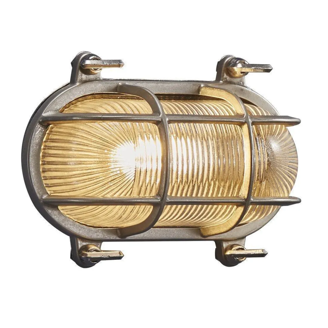 Helford er en robust vegglampe fra Nordlux. Finnes i 2 ulike farger messing og nikkel. Begge modellene egner seg utmerket til å henge på veggen ved kystområder