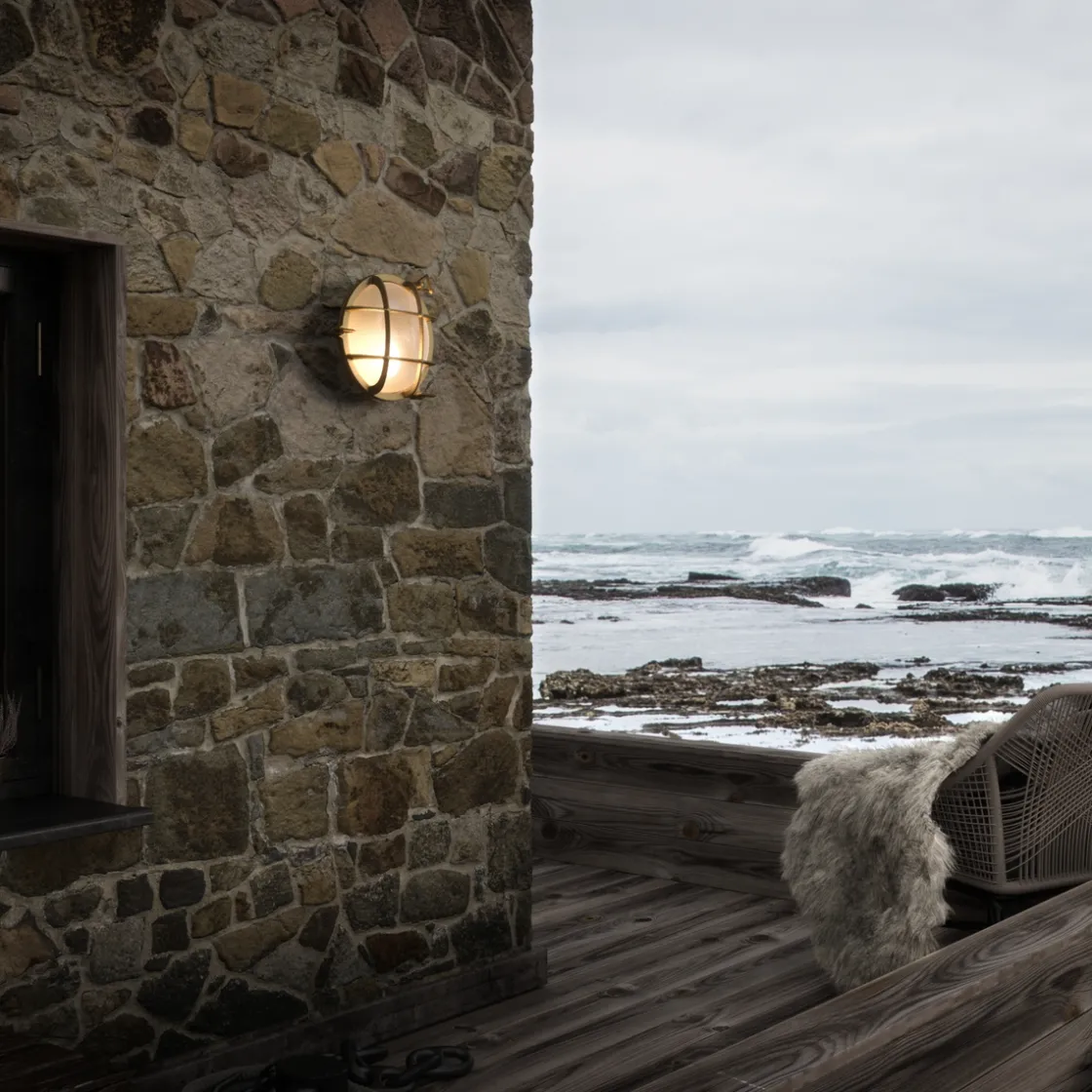 Polperro er en robust vegglampe fra Nordlux. Finnes i 2 ulike farger messing og nikkel. Begge modellene egner seg utmerket til å henge på veggen ved kystområder