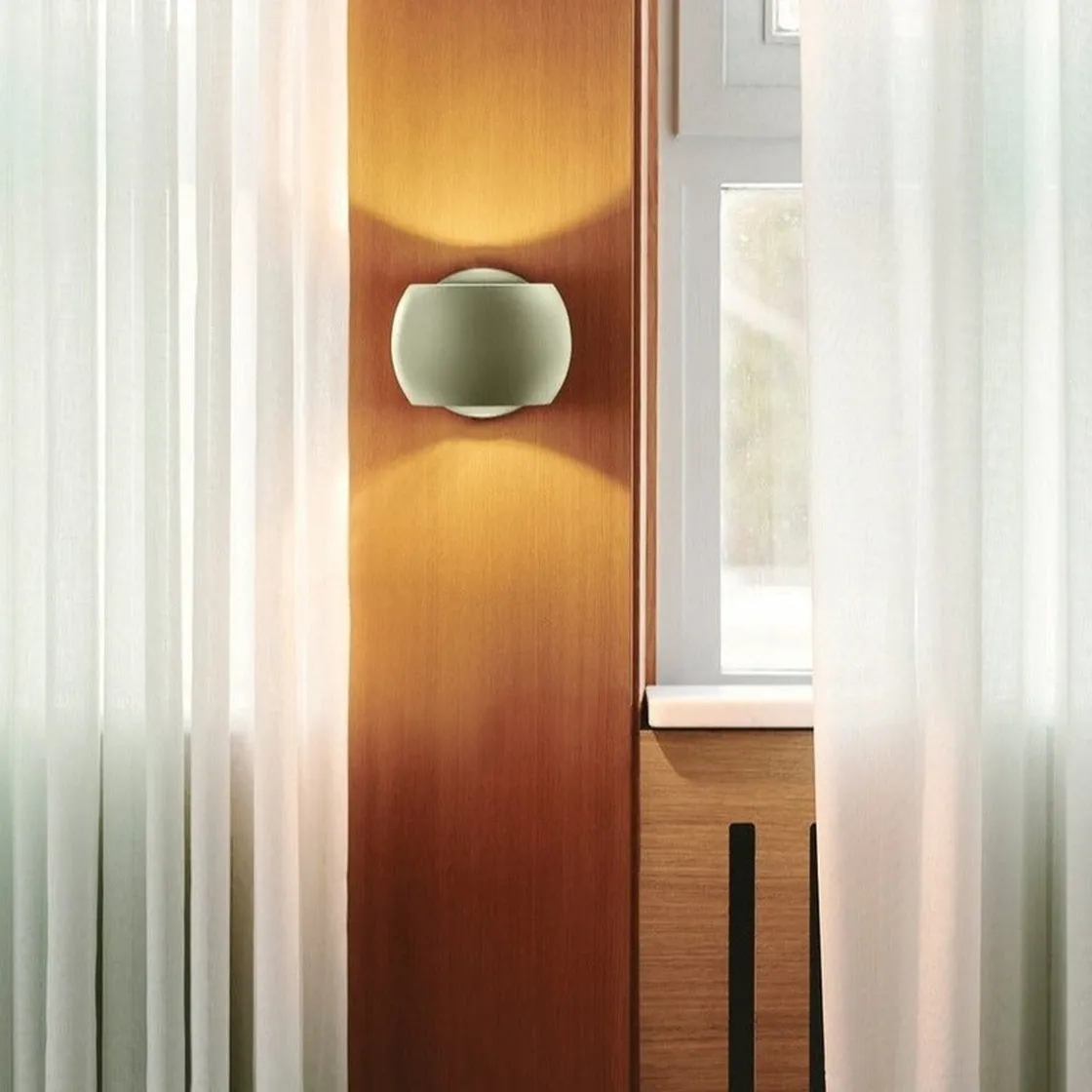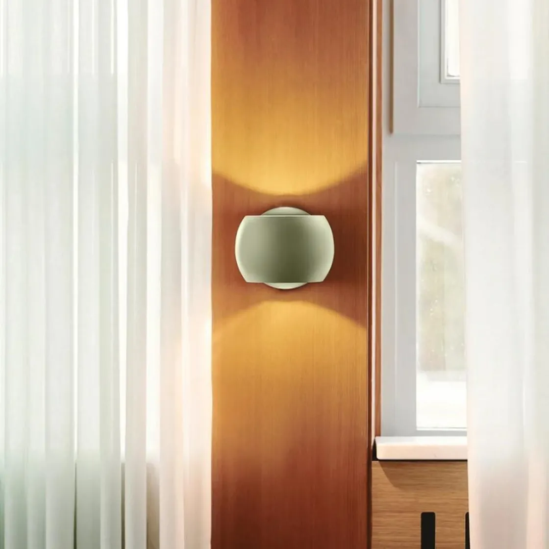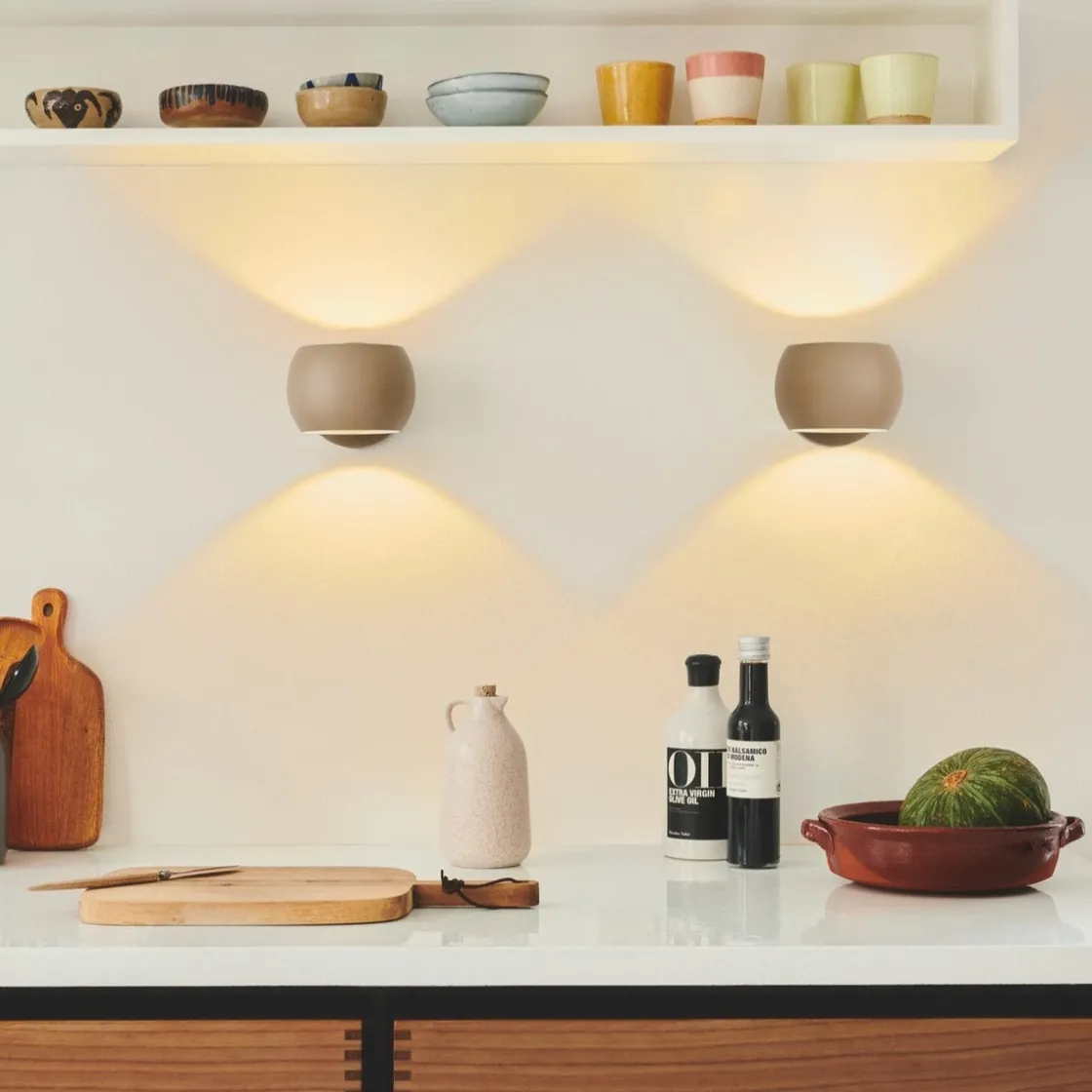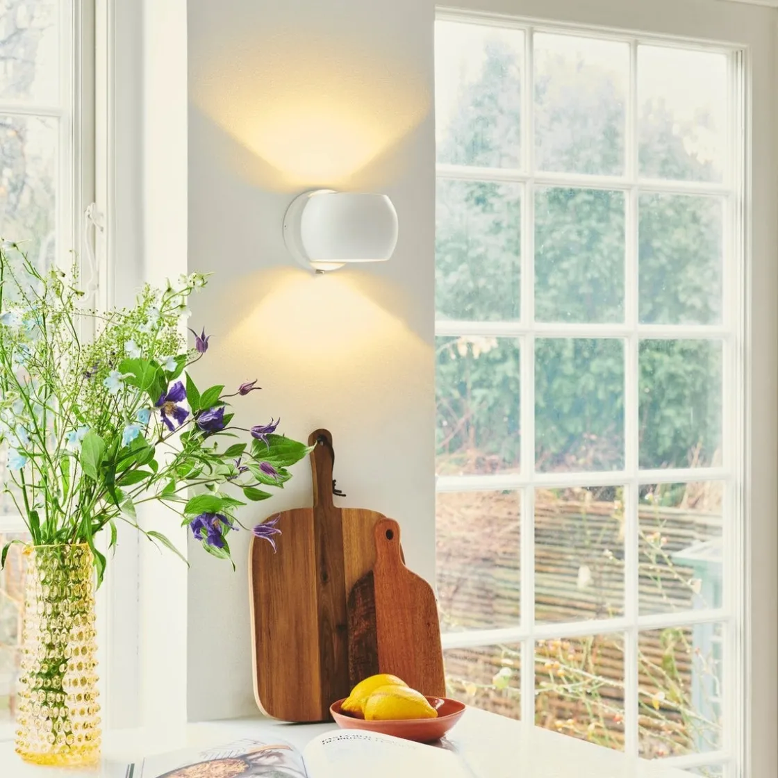 Belir har et lite, rundt design som passer perfekt over kjøkkenbenken eller ved siden av sofaen eller sengen. Den gir et behagelig lys både oppover og nedover, og skaper en elegant lyseffekt på veggen.