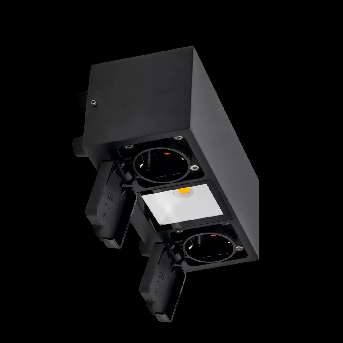 - Robust utendørsarmatur i pulverlakkert aluminium med dobbelt stikkontaktuttak for ekstra tilkoblingsmuligheter