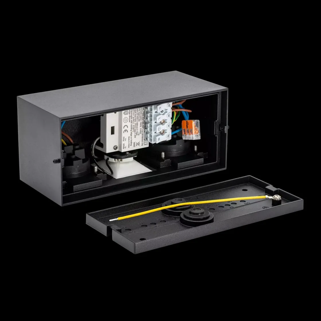 Utendørsarmatur med direkte lys og dobbel uttak. Dimbar ved vanlig dimmer.