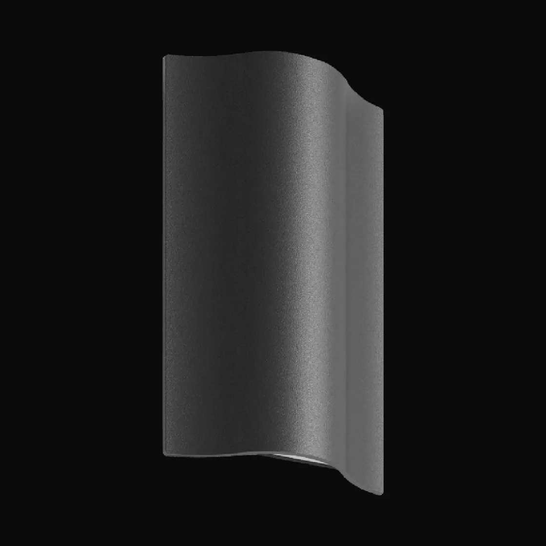 Vega er en dekorativ og diskret utelampe for veggmontering som gir et fint lys både oppover og nedover. Elegant krum konstruksjon i mørk grå.