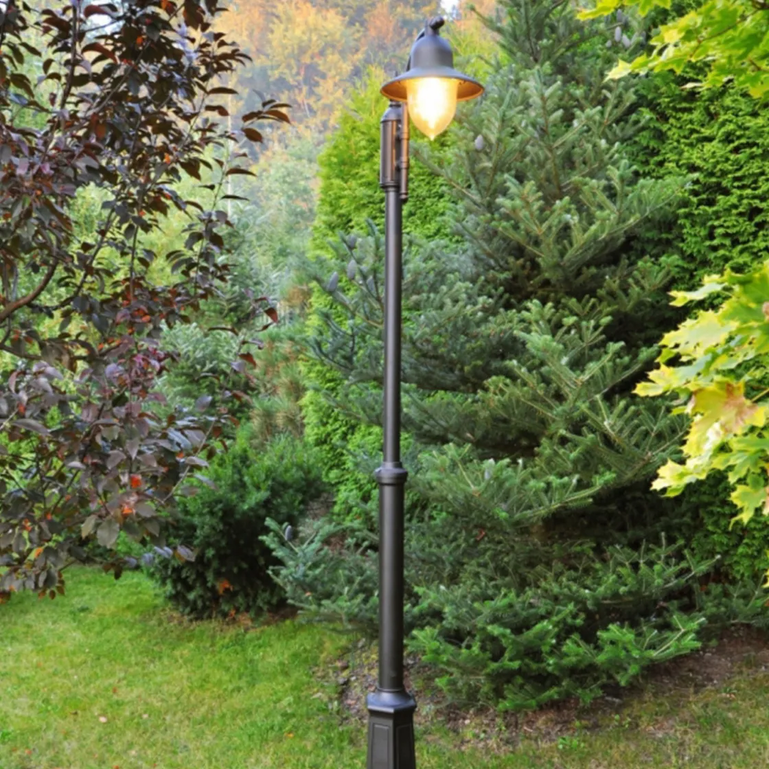 Stolpelampe i klassisk design. Høyden på stolpen kan enkelt justeres. Glass i polykarbonat. Hvit kuppel kan bestilles. Festejern og markfeste bestilles separat. Como leveres i sort. Lampen er en del av en serie som inneholder vegglampe og teleskopstolper med 1 til 3 lyktehoder. Foten på stolpen har sekskantet sokkel. Avstand mellom boltehull er 20,5cm (3 bolter).