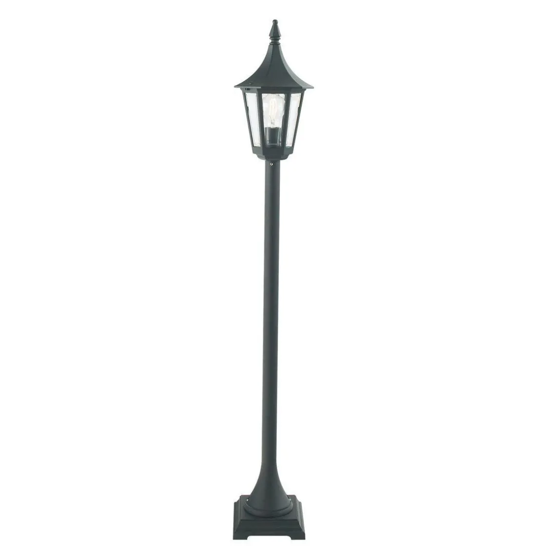 Port og blomsterstolpe i klassisk design. Glass i polykarbonat. Festejern for blomsterstolpe bestilles separat. Art. 404 har firkantet sokkel. Avstand mellom de to boltehullene er 9 cm.