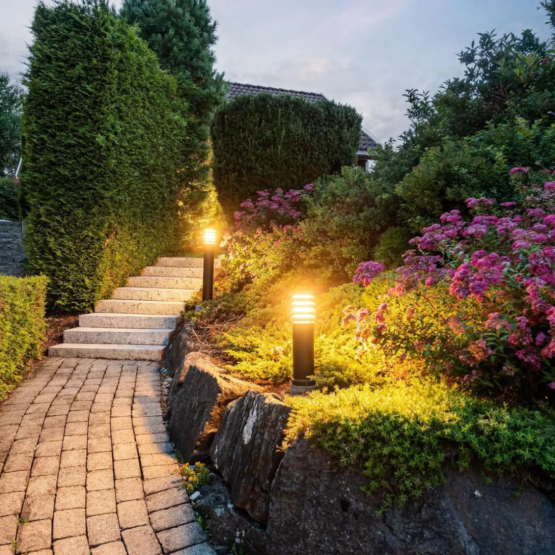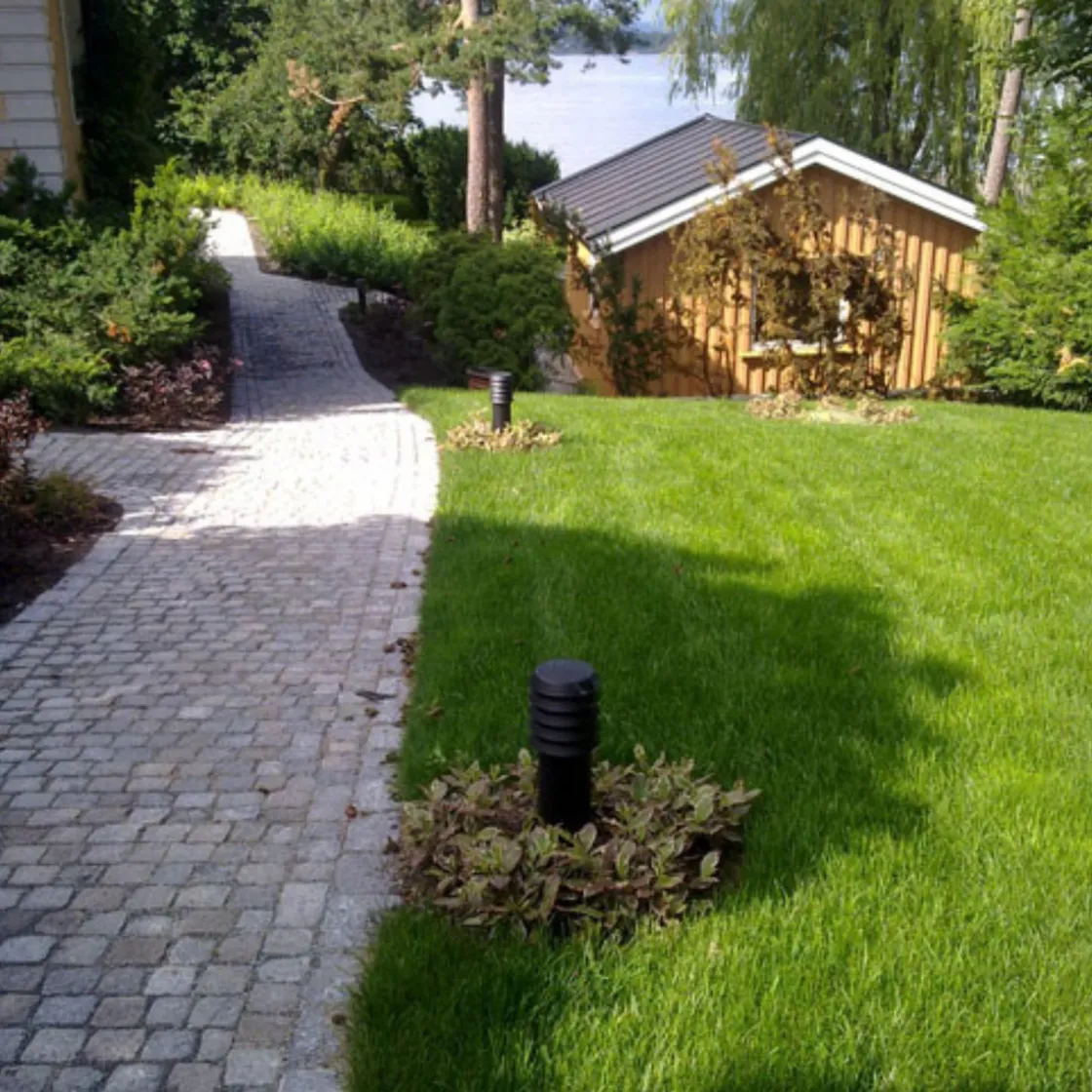 Alta-pullert i moderne design med lys som lyser nedover. Pullerten har opalhvit glasskuppel i polykarbonat, som gir et jevnt og behagelig lys.