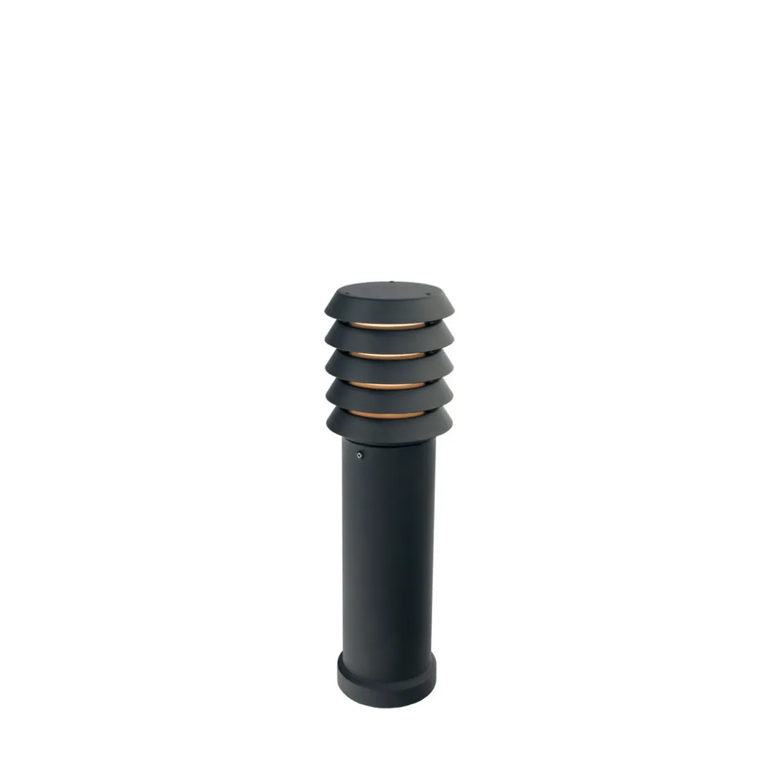 Dersom du ønsker en høyere pullert, finnes den også i 85 cm. Lampen leveres i fargene galvanisert stål, sort samt med furudetaljer.
