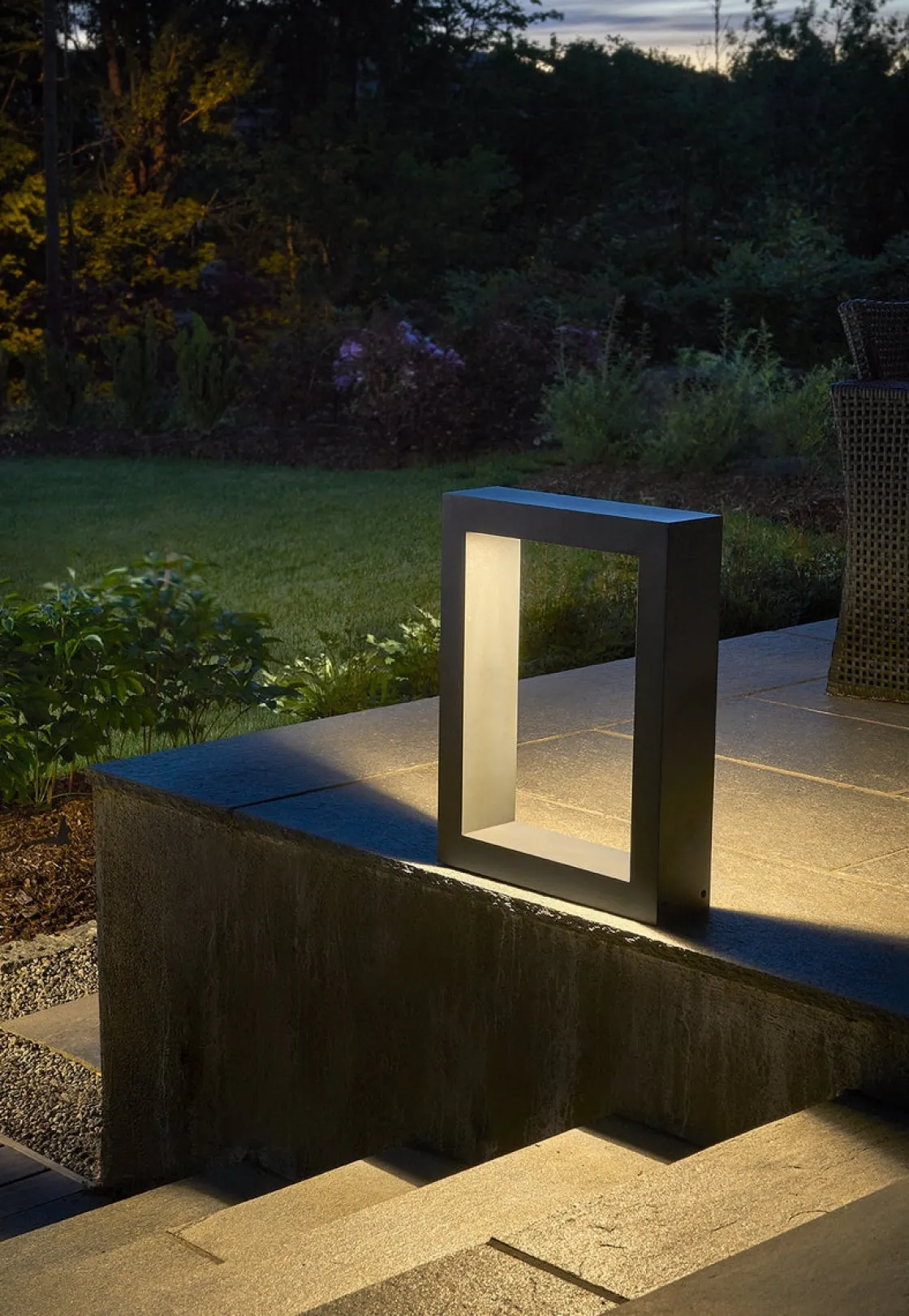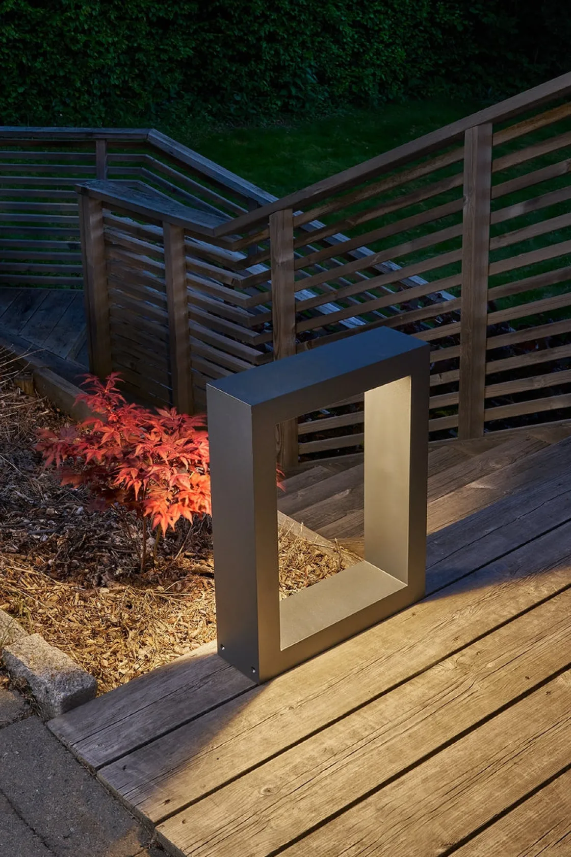 Stilren LED pullert i aluminiumstøp. Blendefri med indirekte lys. Polykarbonat glass med optisk struktur. Lampen leveres i fargene aluminium eller grafitt.
