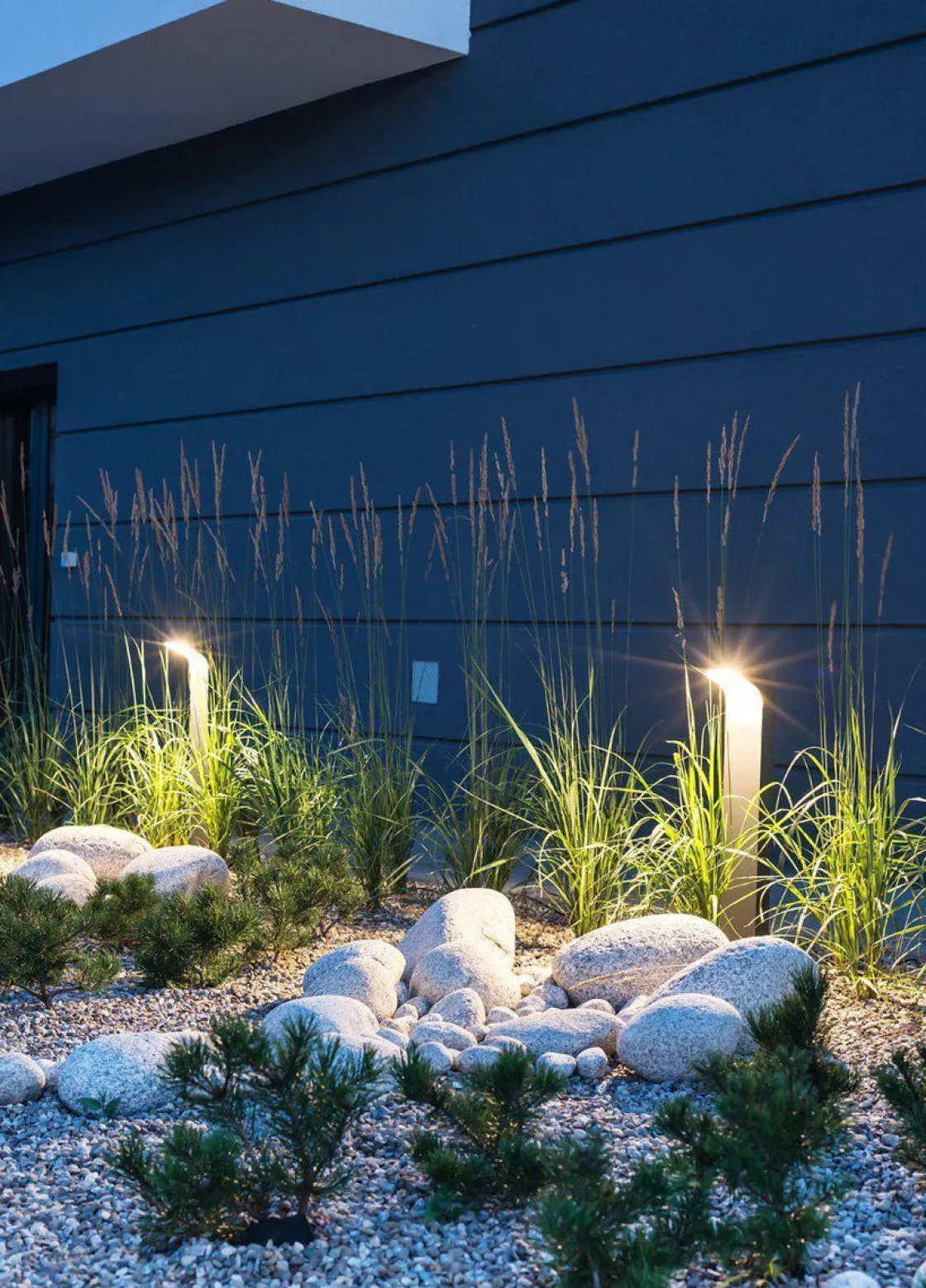 Molde-pullert i pulverlakkert aluminium. Blendfri armatur med indirekte lys.