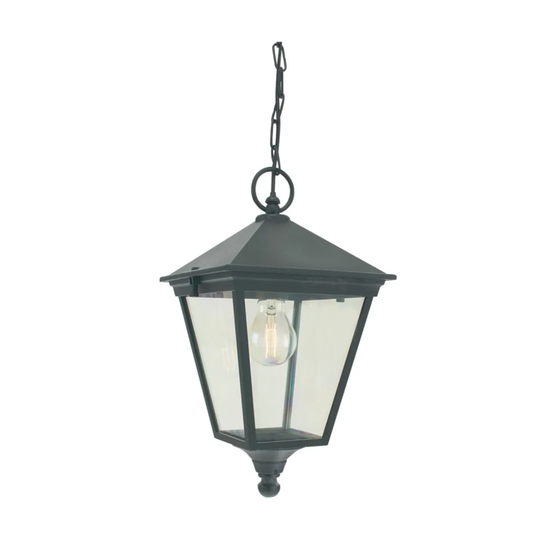 Taklampe i klassisk design med glass av slagfast klar polykarbonat.